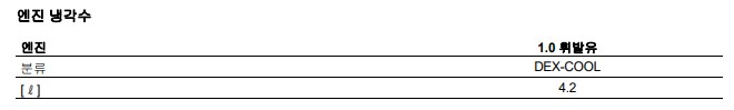 내 차에 맞는 냉각수 규격은 엔진오일과 마찬가지로 취급 설명서에서 확인 할 수 있다. 위의 표는 현대자동차 아반떼의 취급 설명서의 일부인데, 위와 같이 인산염계 에틸렌글리콜계 냉각수를 사용하라고 되어있다.