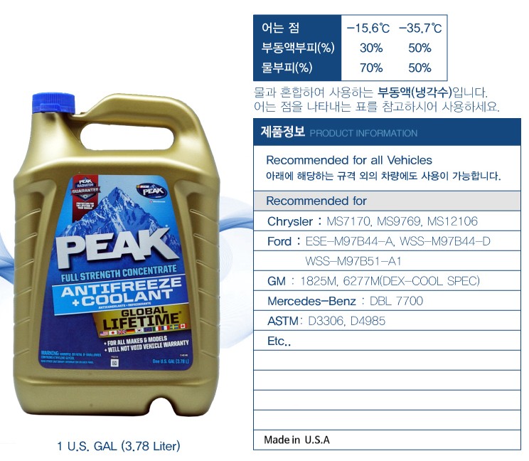 [PEAK]자동차 냉각수 글로벌 라이프타임 부동액- 포드/GM/벤츠 : 케미컬 사이트
