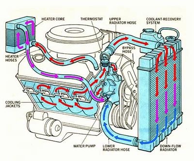 냉각수는 차량 냉각 시스템에 의해 작동이 되는데 엔진이 해당온도에 도달하면 온도 조절기가 열리고 워터 펌프가 시스템 전체에 냉각수를 순환시키도록 한다. 위의 이미지처럼 냉각수는 엔진 전체를 지나가면서 엔진의 열을 흡수하는 역할을 한다. 열을 흡수한 냉각수는 라디에이터까지 이동해 열을 다시 식히는 과정이 반복된다. 또 첨가된 물질에 따라 조금씩 다를 수 있지만, 겨울에는 서리를 견디고 얼지 않도록 하고, 부식이나 침식으로부터 보호하는 역할도 한다.