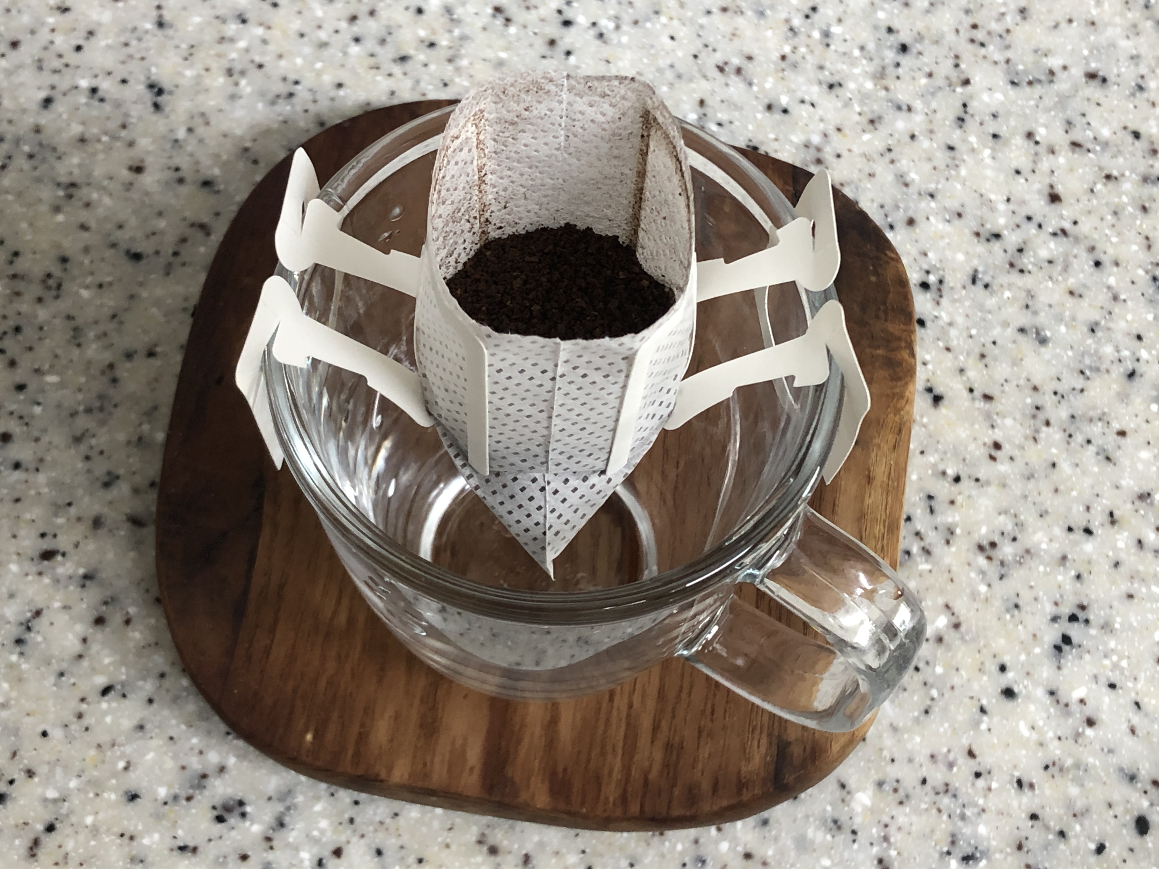 뜨거운 물, 일회용 드립커피, 마실 컵 딱 이정도의 준비만 되어있다면 신선한 커피를 즐길수 있다는 점이 큰 장점이다.