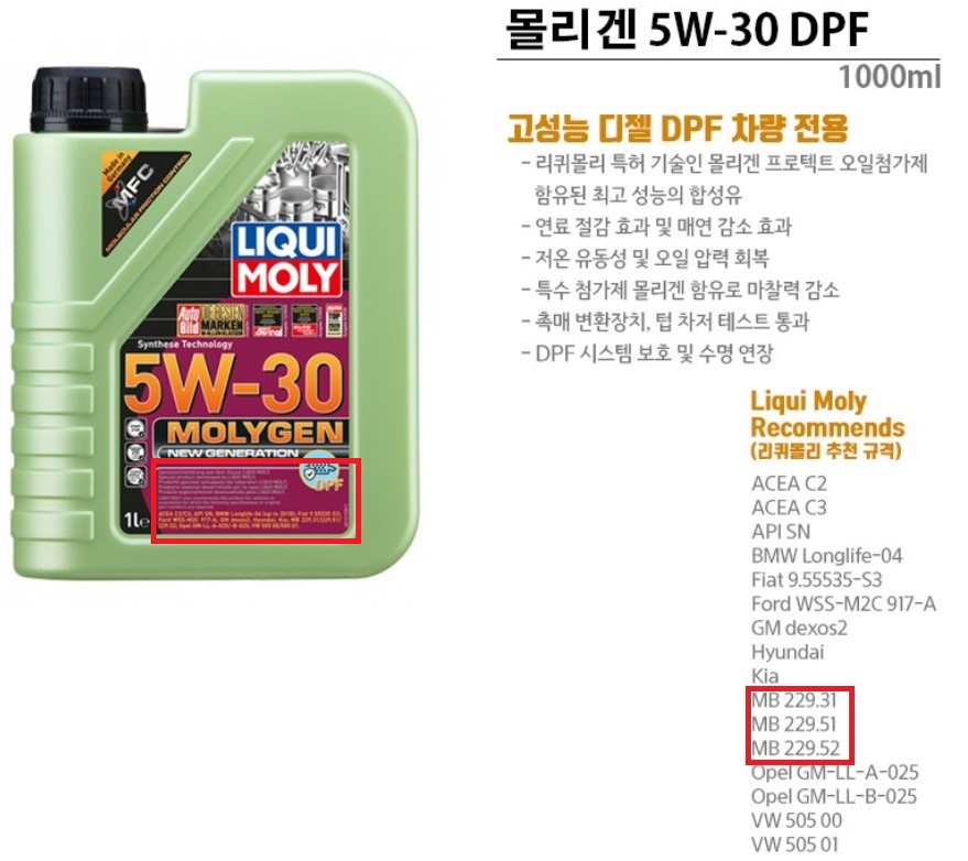 이 내용을 참고하면, 엔진오일 제품 구매시 해당 엔진오일 규격과 점도를 확인하는 것이 가능해질 것이다. 그런데 지금 보고 있는 취급 설명서의 엔진오일 추천 사항에는 위에서 이야기한 내용이 없고 MB SHEET 229.1, 229.3이렇게 적혀있다. 여기서 한가지 추가로 이야기 해야 할 것이 ‘각 브랜드에서 제시하는 등급’이다.