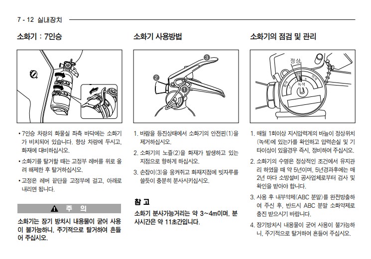 룸밀러 자동조절 방법, 디지털 시계 조작 방법같이 차량마다 조금씩 다를 수 있는 작동법을 숙지할 수 있고, 특히 소화기 위치 및 사용방법, 차량 정비 및 점검 관리 부분은 거의 사용하지 않아 소홀 할 수 있는 부분이기 때문에 꼭 읽어 보는 것을 권장한다.