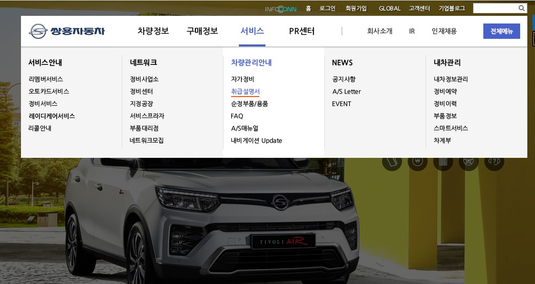 우선 쌍용자동차 공식 홈페이지로 들어간 후,