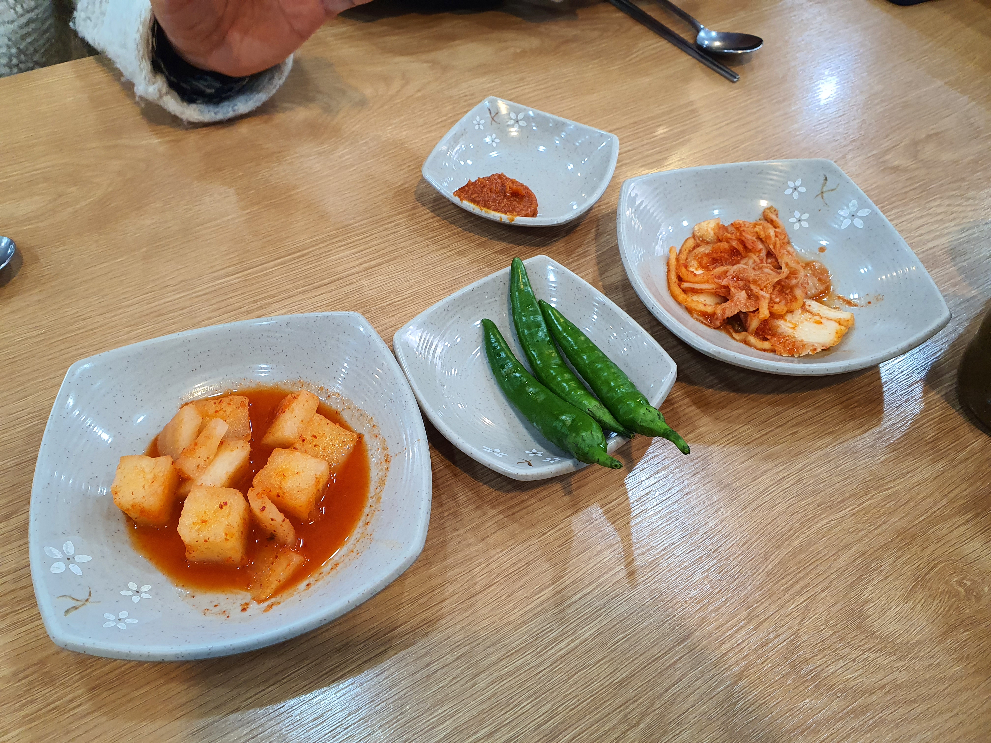 만세 고기국수의 기본 반찬은 굉장히 단촐하다. 사실 김치가 엄청나게 맛집이다. 라고 할 수는 없지만 고기국수와 잘 어울리는 편이다. 한 가지 특징이 있다면 올 때마다 느끼는 것이지만 청양고추 그 이상의 매움을 느낄 수 있는 고추로 맵부심이 있는 사람들이라면 한 번 먹어볼만하지만 매운 것을 잘 못먹는다면 도전 조차 안하는 것이 좋다.
