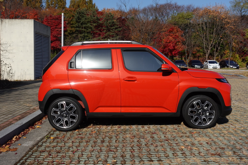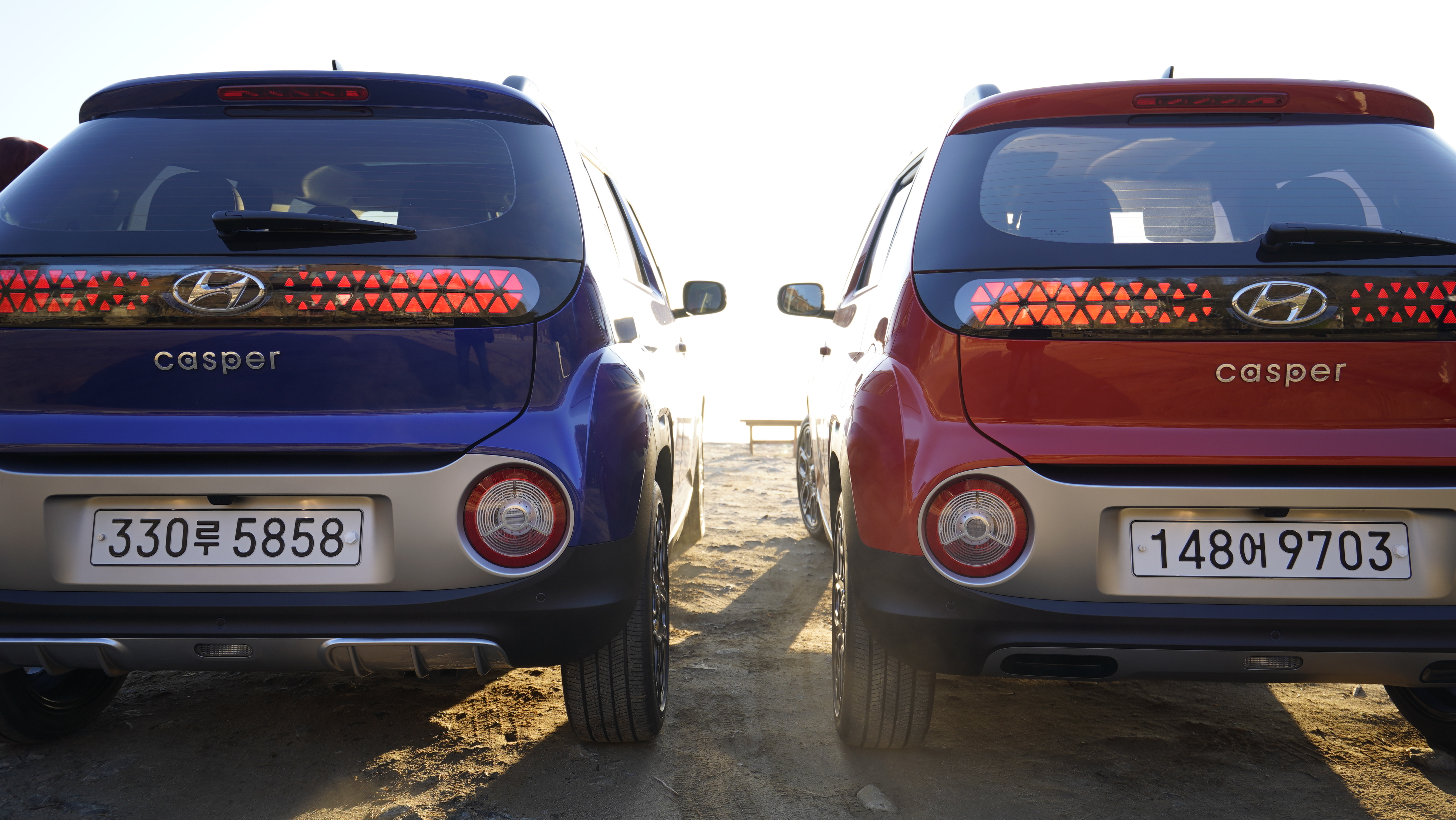 차량 외모를 살펴보면 1.0 가솔린 터보 (인텐스 블루 펄) / 1.0 가솔린 MPi (소울트로닉 오렌지 펄)보면 전면 그릴 차이가 확실히 터보 모델이 좀 더 스포티한 느낌이 있으며 자연흡기 모델은 전면이 전기차처럼 막혀있는 듯한 느낌으로 전면에서 큰 차이를 보여준다. 1.0 가솔린 터보 모델에는 라디에이터 그릴과 프론트 스키드 플레이트를 적용하고 있다. 반면 리어 디자인에 있어서는 큰 차이를 느낄 수가 없었는데 하단 디퓨져 부분을 살펴보면 터보 모델에서 차이가 있다는 것을 알 수가 있어서 개인적으로 도로에서 캐스퍼를 만났을 때 디퓨저가 심심하면 기본 모델로 추월해서 가는 것도 하나에 방법이다.