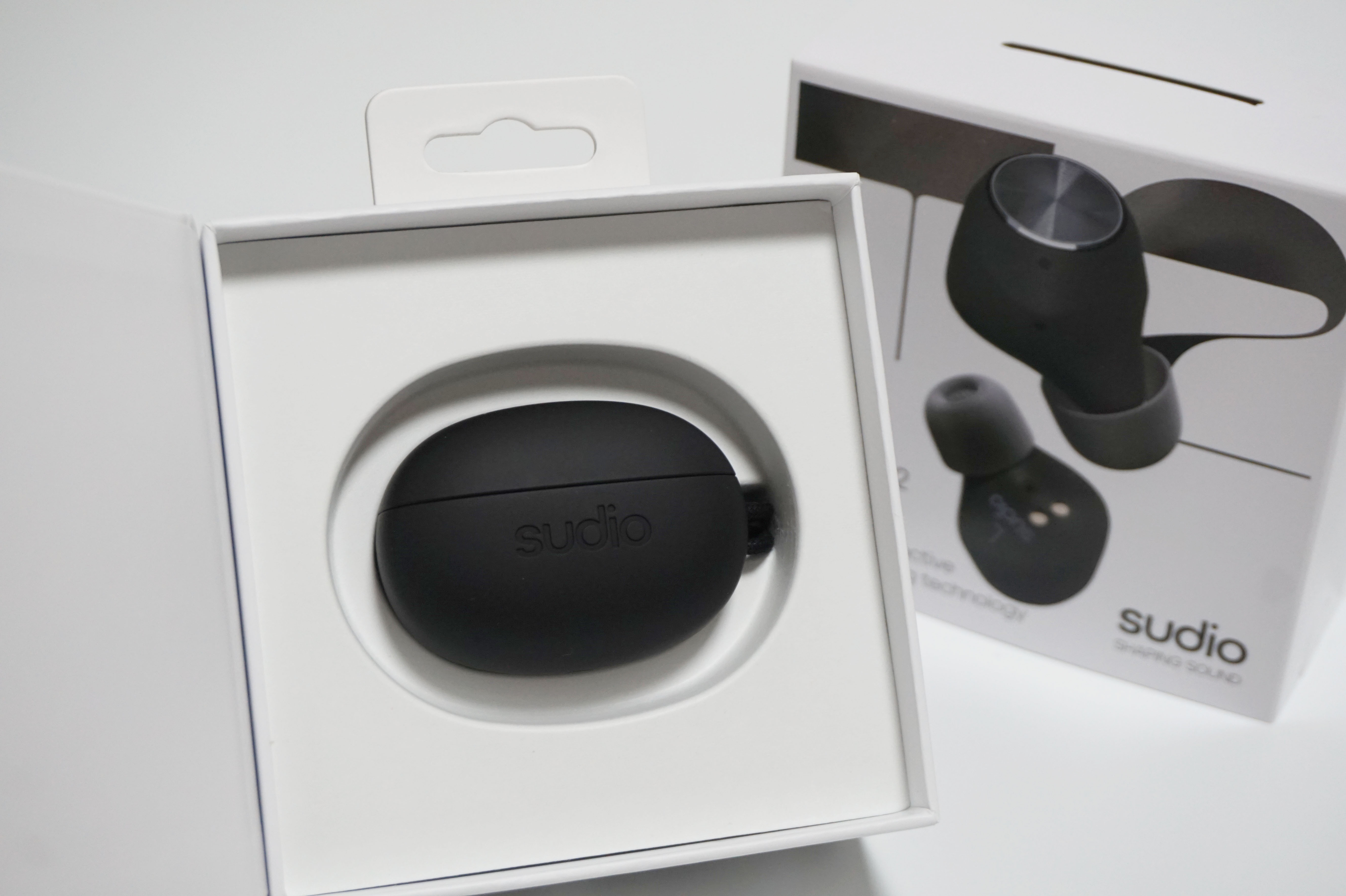 무선이어폰 Sudio T2 - 포장 케이스를 열어보면 조약돌같은 모양의 이어폰 케이스가 담겨져 있다.