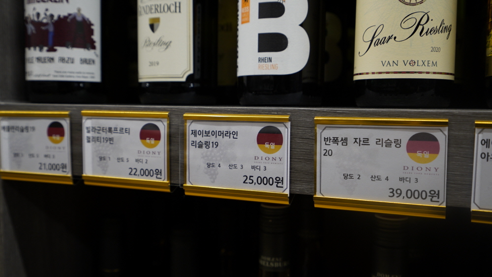 또한 와인을 잘 모르는 사람들을 위해서 당도 / 산도 / 바디감을 표시하고 있어서 기존에 내가 먹었던 와인을 찾아서 당도와 산도 그리고 바디감을 비교한다면 보다 쉽게 내가 좋아하는 스타일의 와인을 구입할 수 있다는 점이 장점인 곳이다. 개인적으로는 제이보이머라인 리슬리19 모델을 즐겨마셨는데 이 곳에 있어서 상당히 반가웠다.