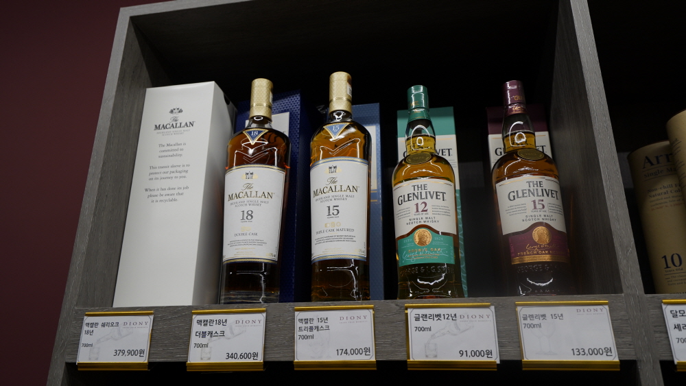 사실 이 곳을 방문한 이유는 지나가다 위스키라는 단어가 보였기 때문이다. 개인적으로 위스키를 굉장히 좋아하는 편인데 구하기 힘들다는 맥캘란 쉐리오크 18년부터 15년 / 18년산 모델들을 만나볼 수가 있었으며 글랜리벳 12년산도 생각보다 구하기가 힘든에 이 곳에서는 만나볼 수가 있었다.