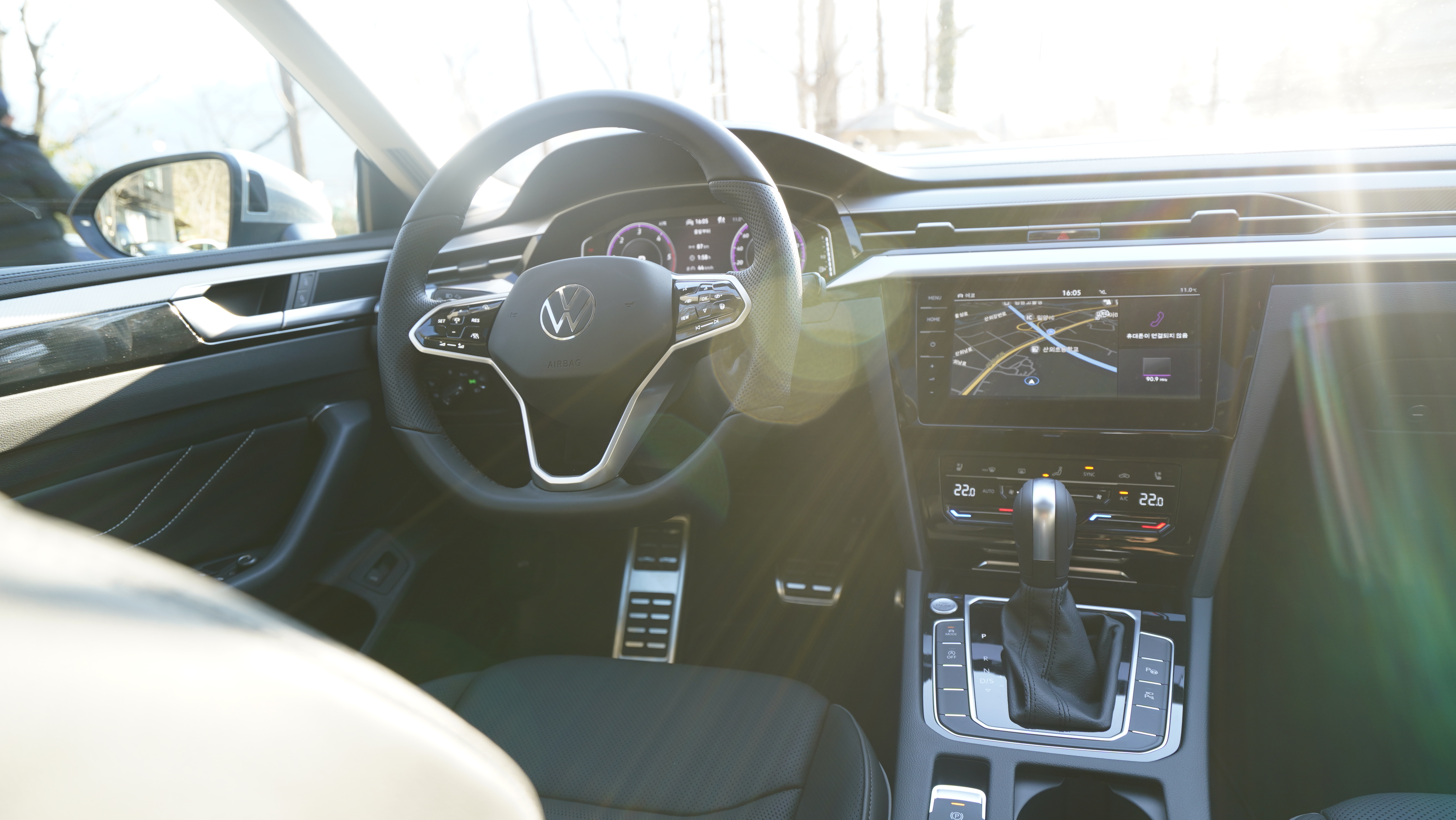 또 하나에 실내의 특징이라고 하면 공조기 시스템에 대한 변화였다. 이전 아테온의 공조기 시스템은 다이얼 방식으로 7세대 골프와 티구안을 연상하는 듯한 느낌으로 고급스러움이 떨어졌다. 하지만 이번 부분변경 모델에서는 터치 스타일의 새로운 공조기 디자인과 시스템이 변경되어 상당히 고급스러운 모습을 보여준다. 다만 아쉬운 부분은 폭스바겐 아테온 페이스리프트 모델과 함께 출시된 폭스바겐 골프 8세대 모델에 새롭게 적용된 시프트 바이 와이어 디자인이 아닌 기존 디자인이라는 점이 살짝 아쉬운 부분이다.