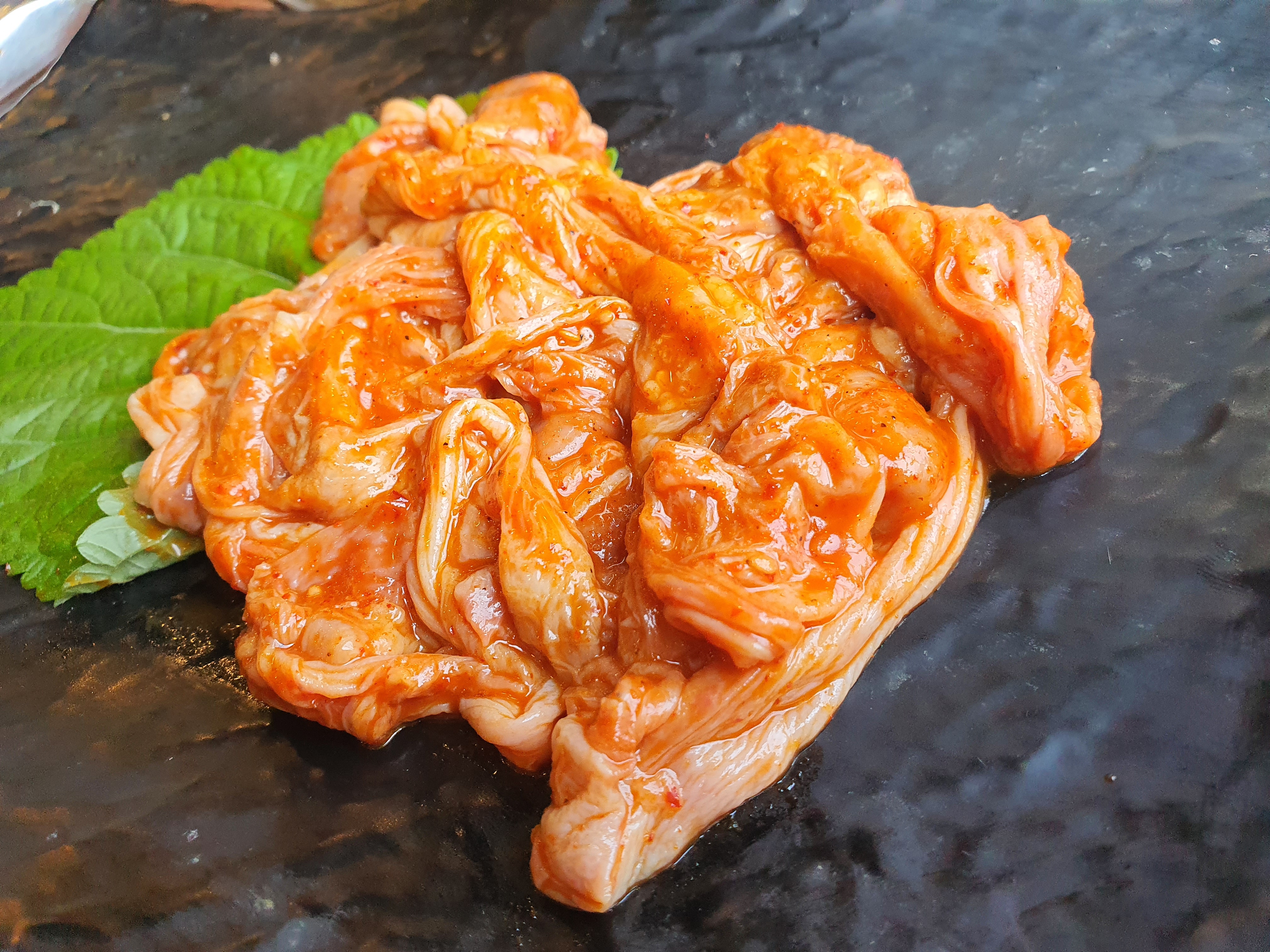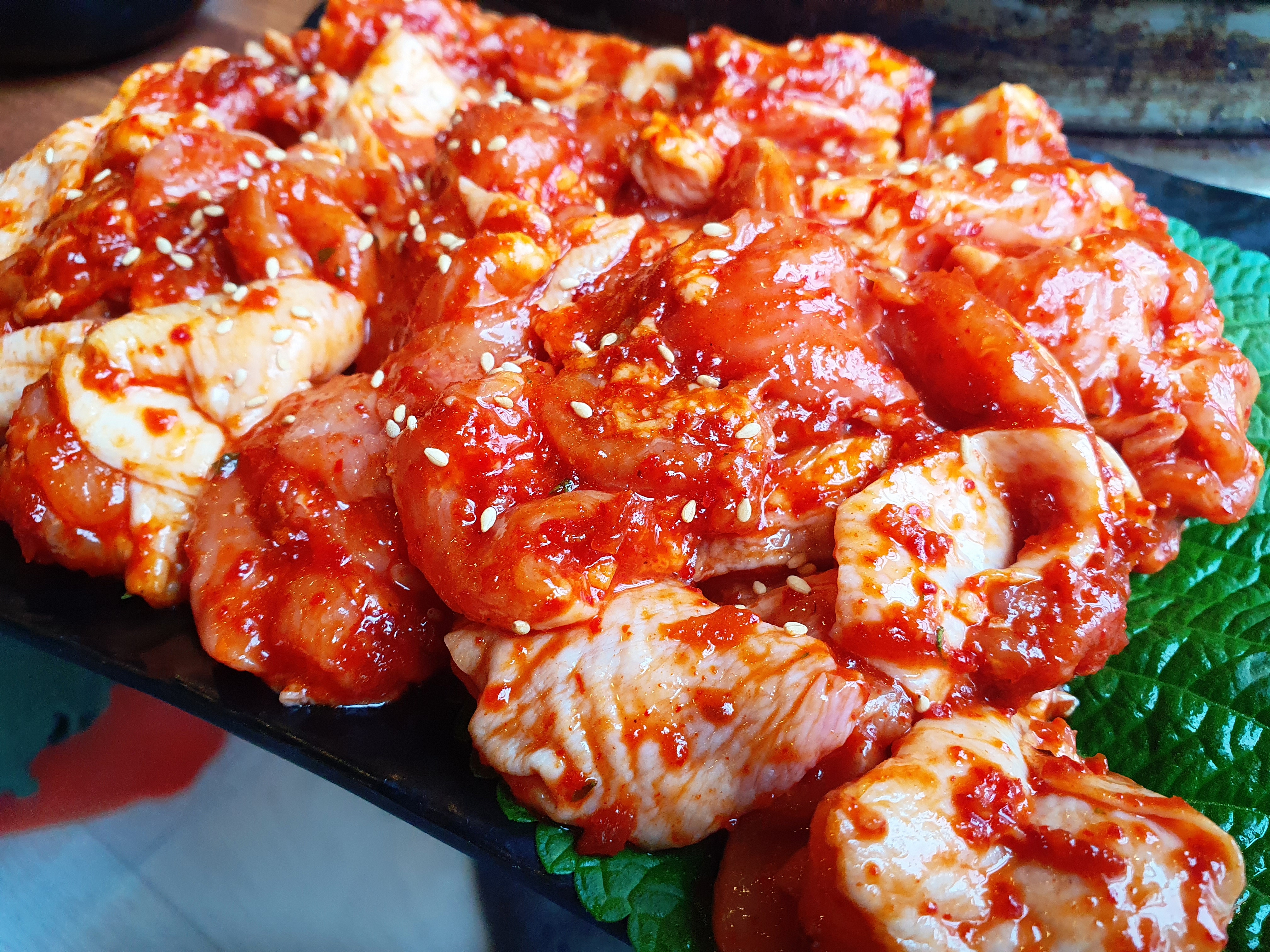 불판을 보고는 더욱 그런 생각이 들었다. 이 불판은 철판 닭갈비에 사용하는 불판인데 혹시나 우리가 자리를 잘못 앉았나? 라는 생각이 들기도 했지만 사장님은 걱정하지말라고 한다. 기본 반찬은 크게 특별할 것이 없었기에 홍천 맛집으로 알고 온 이 곳이 정말 맛있는 곳이 맞을까? 라는 생각이 들기도 했다.