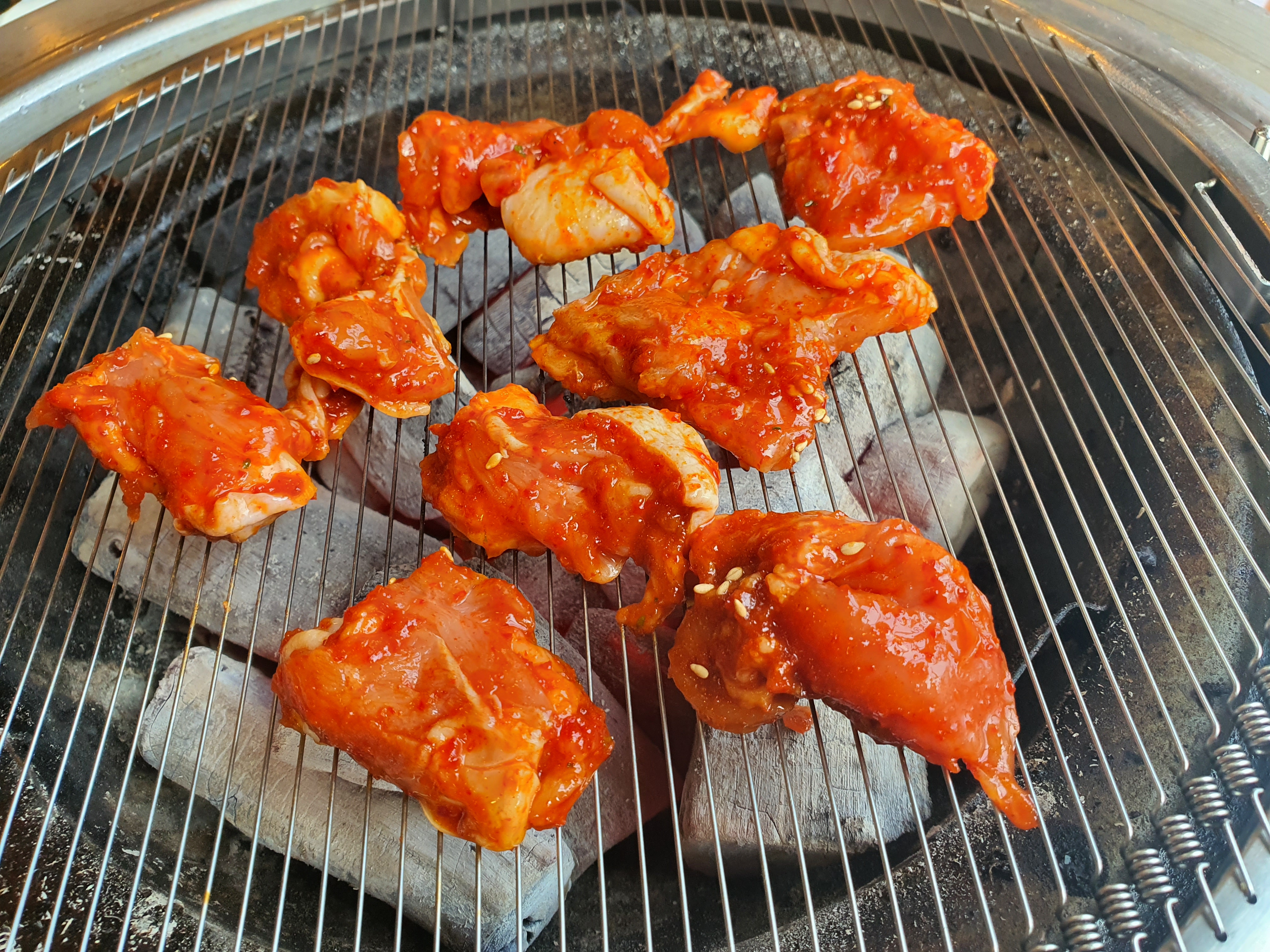 춘천 여기저기 정말 유명하다는 닭갈비 맛집은 모두 다녀봤지만 이렇게 부드러운 육질은 처음 느껴봤다. 숯불 닭갈비 같은 경우는 조금만 더 익혀도 육질이 퍽퍽해질 수가 있지만 둥이네 닭갈비는 그런 느낌이 거의 없었다. 또한 양념 고기를 숯불에 익히면 화력 조절이 어려워서 금세 타버렸지만 꺼진듯 안꺼진 숯불의 강도 또한 환상적이다.