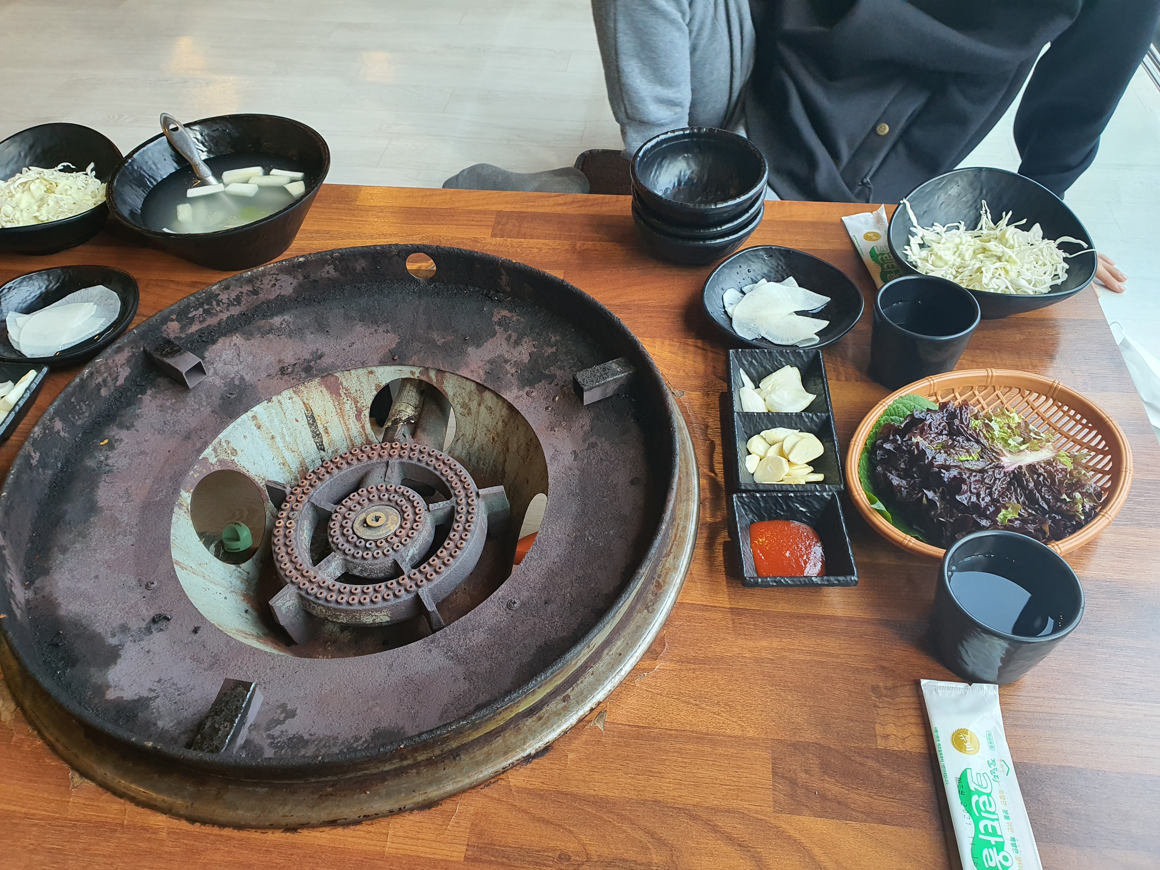 불판을 보고는 더욱 그런 생각이 들었다. 이 불판은 철판 닭갈비에 사용하는 불판인데 혹시나 우리가 자리를 잘못 앉았나? 라는 생각이 들기도 했지만 사장님은 걱정하지말라고 한다. 기본 반찬은 크게 특별할 것이 없었기에 홍천 맛집으로 알고 온 이 곳이 정말 맛있는 곳이 맞을까? 라는 생각이 들기도 했다.