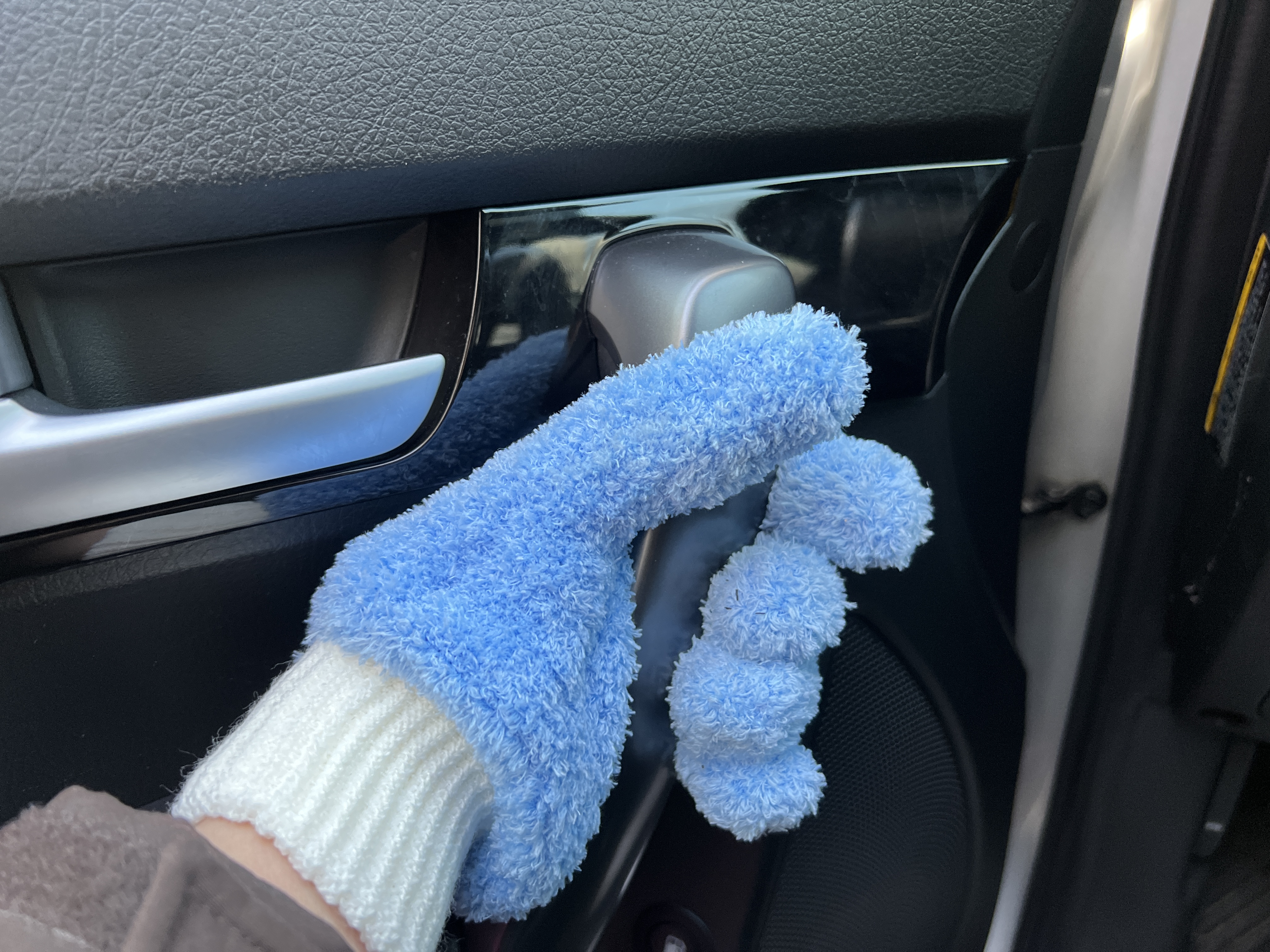 게다가 장갑 형태로 되어 있어 실내 세차 시 세차 타월로 닦을 경우 놓치기 쉬운 이런 각져 있는 모양이 있는곳 또는 깊숙한 곳도 손가락을 이용해서 꼼꼼히 닦을 수 있기 때문에 굉장히 편리합니다. 추가로 추운날 문열고 청소하더라도 손이 덜 시려워 세차 장갑으로 일석이조 입니다.