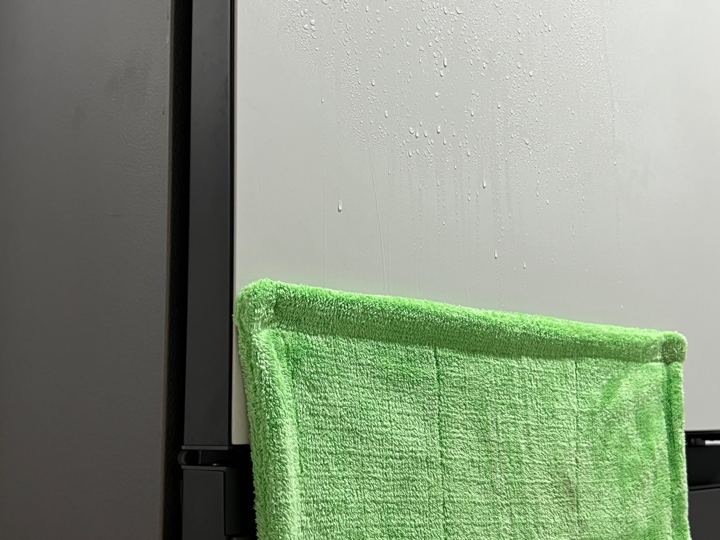 또는 물이 튀지 않길 원하는 곳이나, 물이 계속 떨어지는곳 부근에 드라잉타월용도로 부착해 두면 편리합니다. 예를들어 사진엔 대충걸쳐 놨지만 사이드 미러 안쪽을 감싸듯 타월끝끼리 자석을 붙여주면 물이 계속 떨어지는 것을 방지할 수 있습니다. 다른 예로 자동차 손잡이 같이 홈이 파져 있어 물이 계속 흐를 수 있는 곳 바로 밑에도 자석으로 타월을 붙여 고정해 두면 미처 닦지 못해 흐르는 물로 인해 계속 닦을 번거로움이 줄어 들게 되죠.