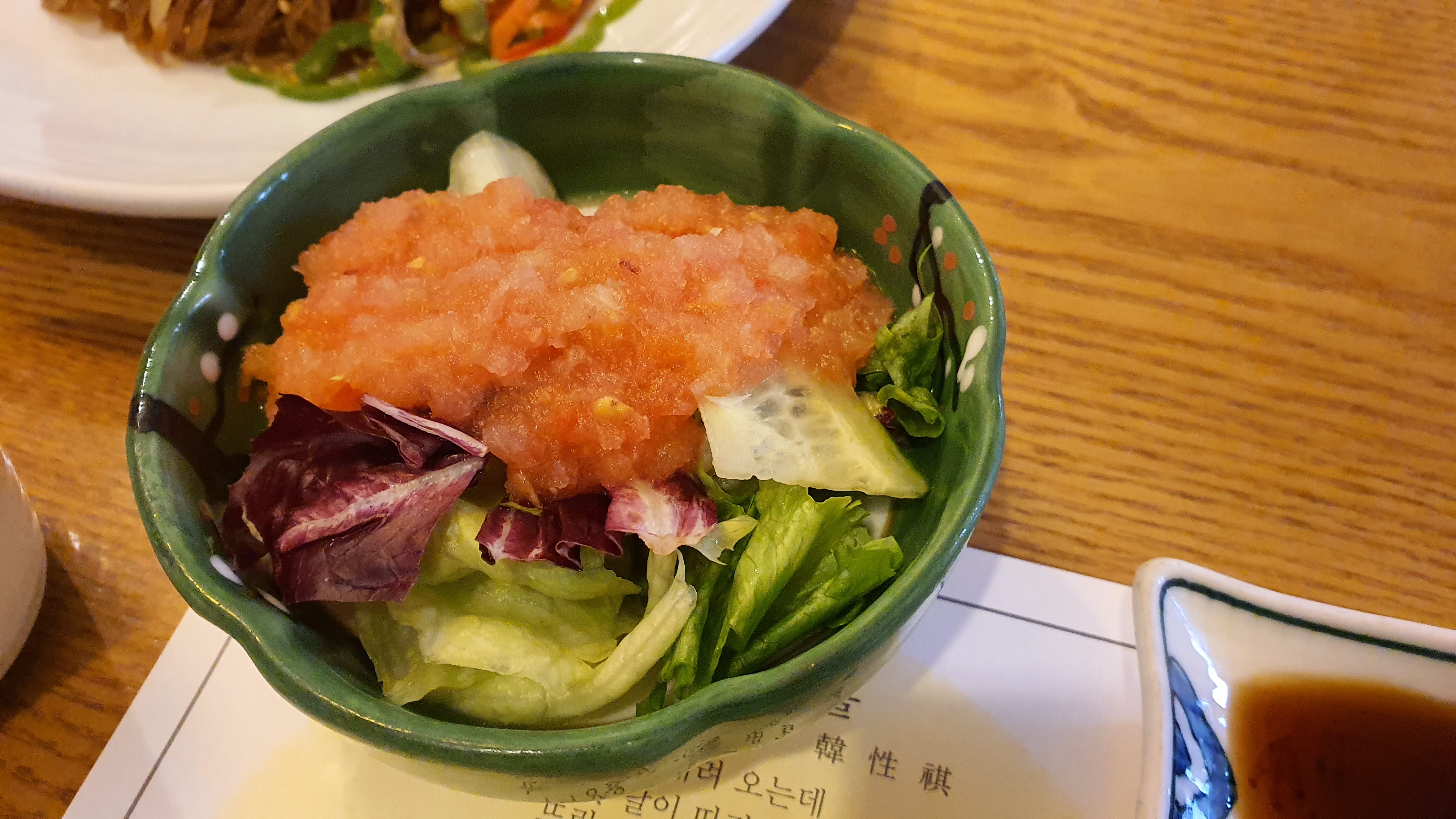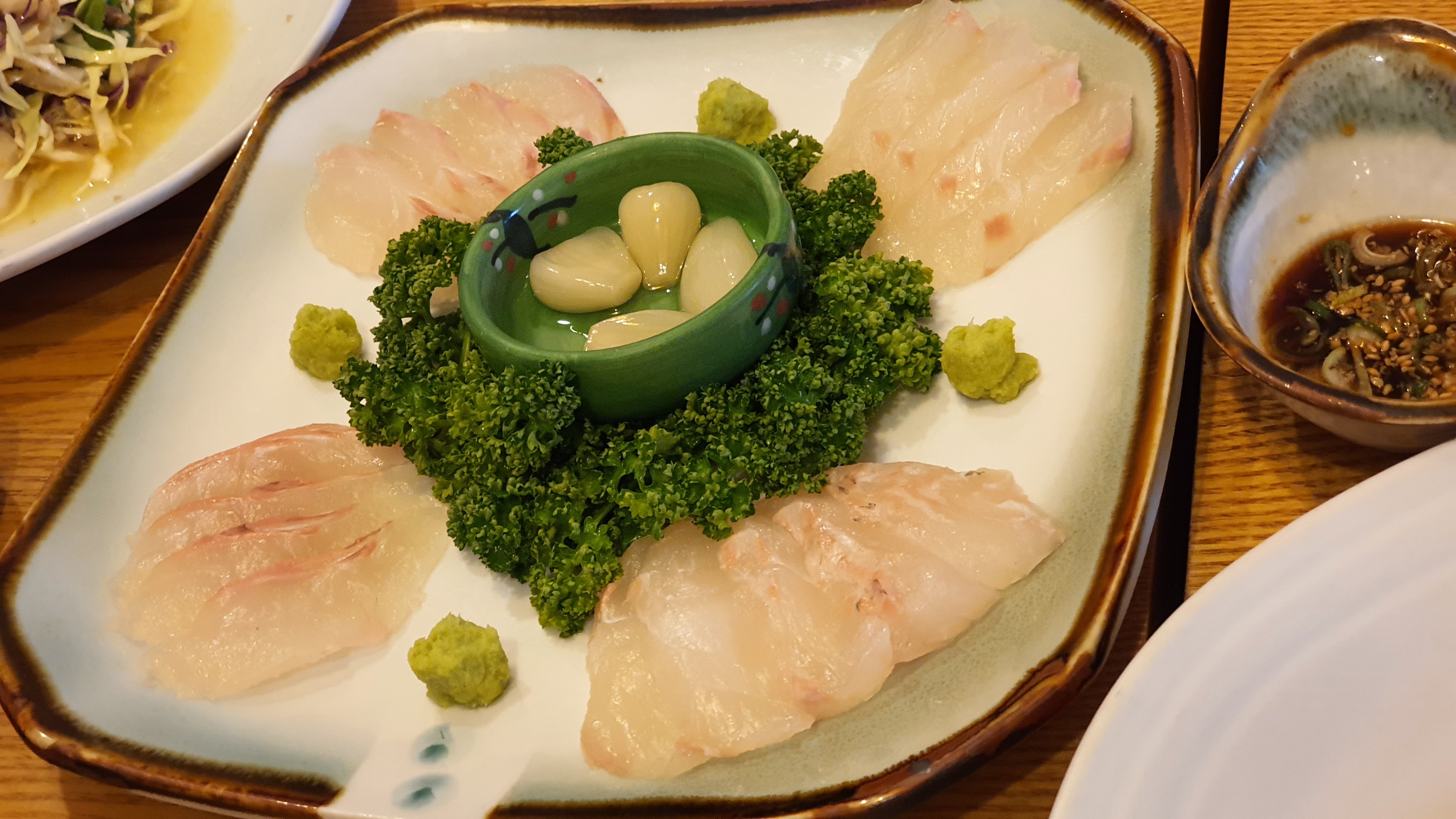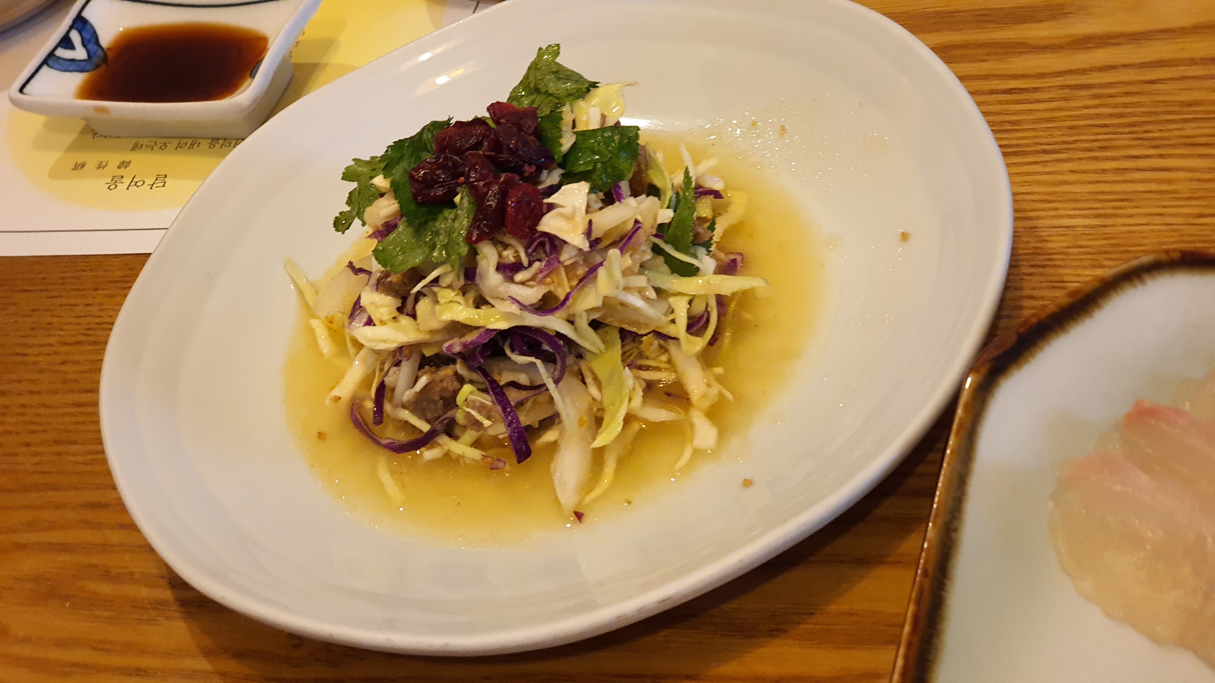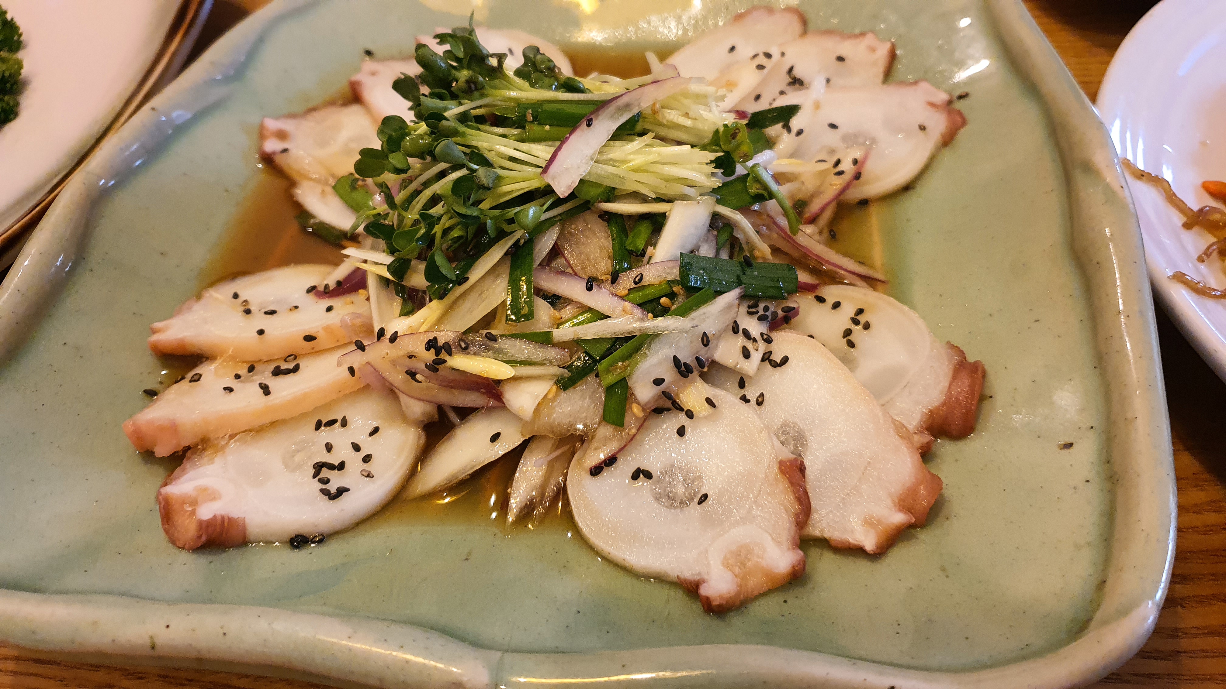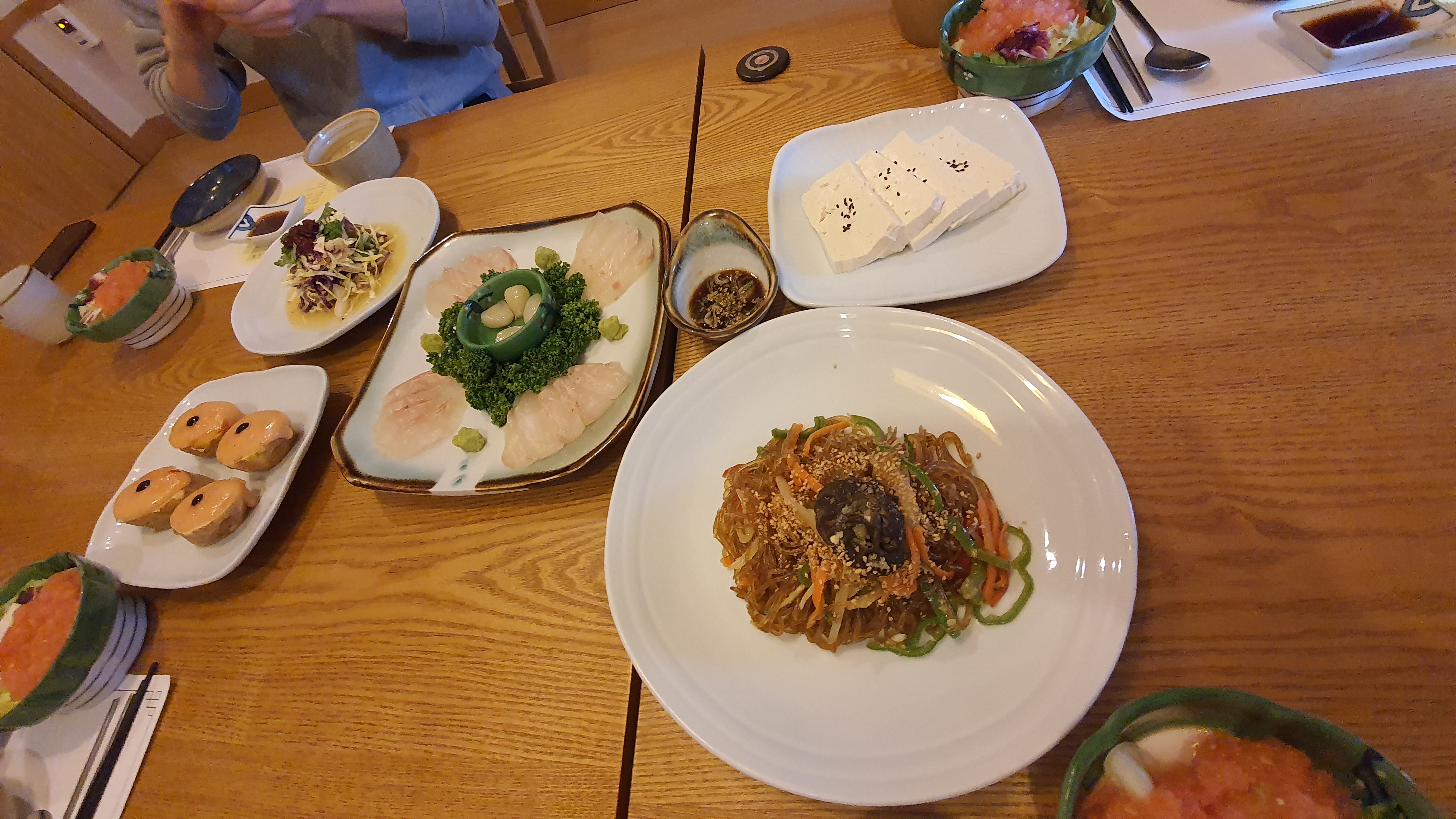 기본적으로 회, 두부, 잡채, 감자, 샐러드 등이 나오는데 점심 식사를 했지만 저녁에 술 한잔 하면서 이야기하기에 정말 괜찮은 곳이라 생각되는 곳입니다. 음식은 기본 인원 수에 맞춰서 나오는 곳입니다.