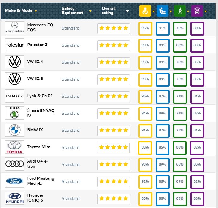 이런 폴스타의 노력은 자동차 안전도 평가 유로앤캡 (Euro NCAP)에서 폴스타2 모델은 최고 안전 등급인 5스타를 받았다. 2021년 9월에 발표한 유로 NCAP 테스트에서 1위를 차지한 폴스타2 모델은 성인 탑승자와 보행자 부상 최고화 항목에서 가장 큰 점수를 받았으며 현재 전 세계에 판매되는 전기차 브랜드 중 벤츠 EQS 플래그쉽 다음으로 폴스타2 모델이 가장 안전한 전기차로 손꼽히고 있으며 동급에서는 최고의 안전성을 보여주고 있는 모델이다.