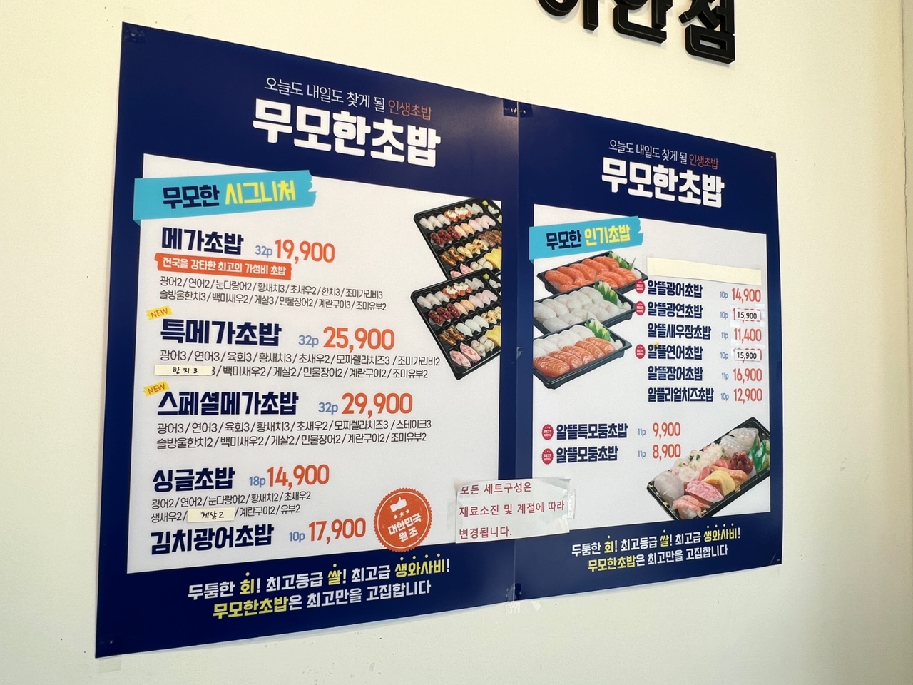 오랜만에 가족과 함께 주말에 간단점심메뉴로 색다르게 먹을거 없을까 고민하다가 초밥을 먹기로 했는데요. 가끔 초밥 먹고 싶을때 이용하는 하안동맛집 무모한초밥집을 다녀왔습니다.