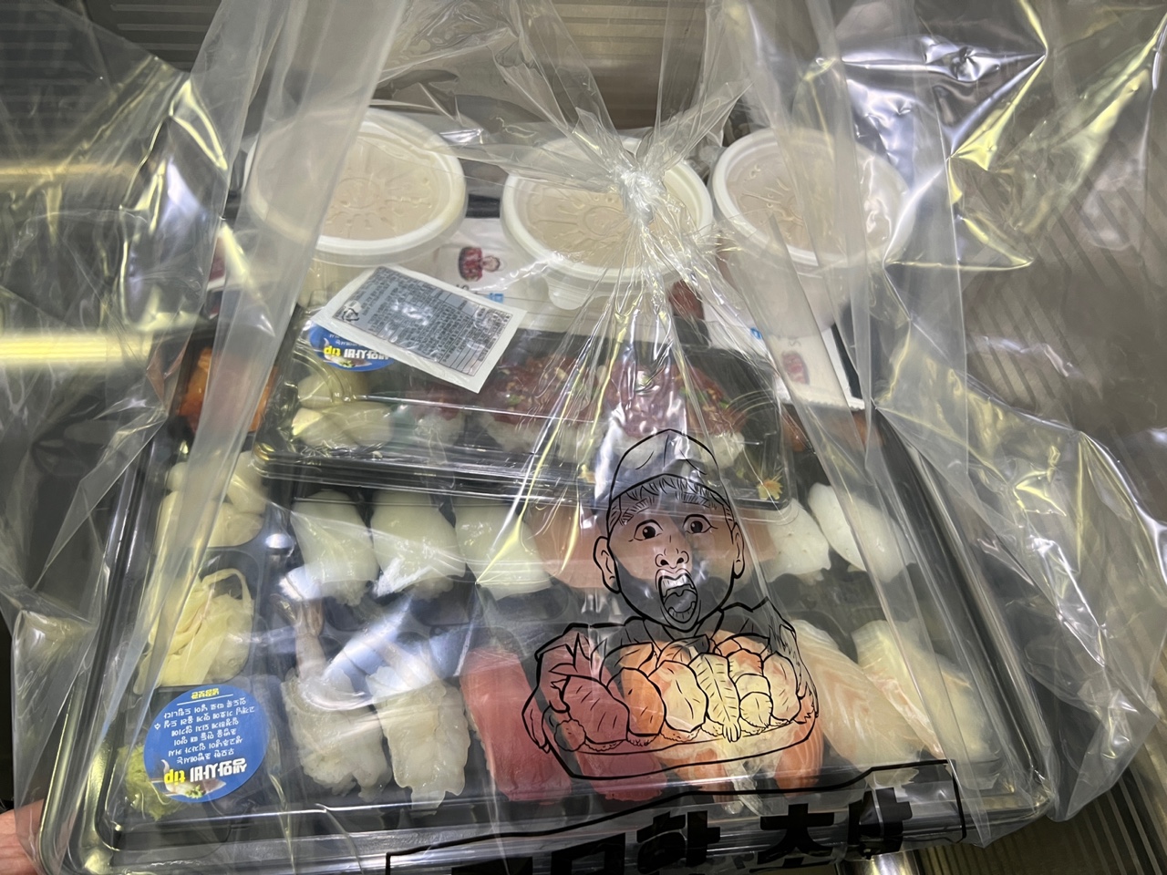 양이 많지 않은 성인3명이 먹을용으로 메가세트1개, 육회초밥5P 1개 이렇게 주문했는데요. 이렇게 깔끔하게 포장되어 나왔습니다. 따로 개수를 요청드린건 아닌데 물티슈, 장국을 딱 3개씩 넣어주셨습니다.
