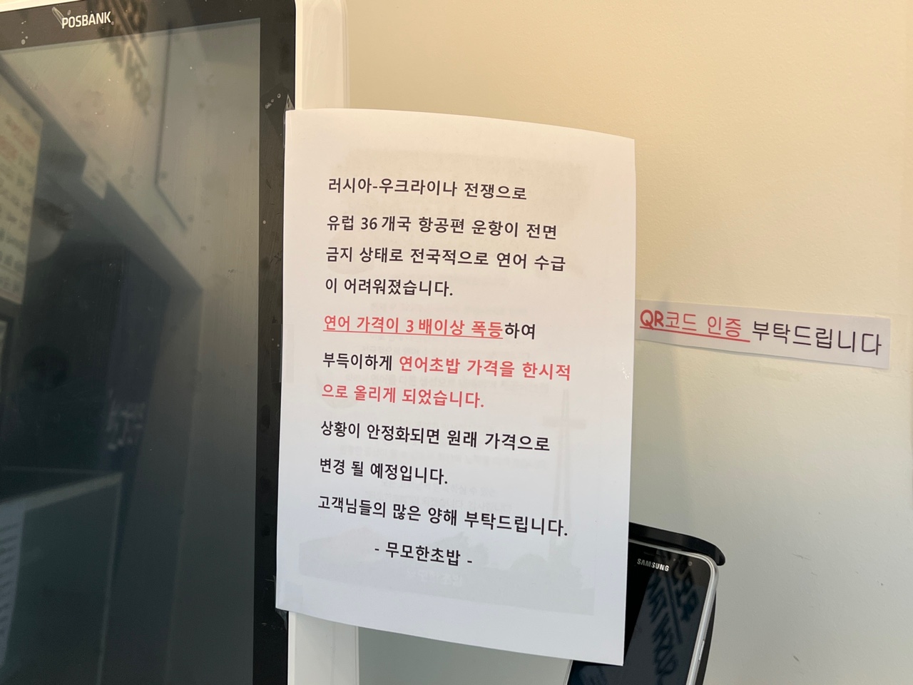 연어 가격이 3배이상 폭등..... 연어도 연어지만... 전쟁이 빨리 해결 됐으면 좋겠습니다....