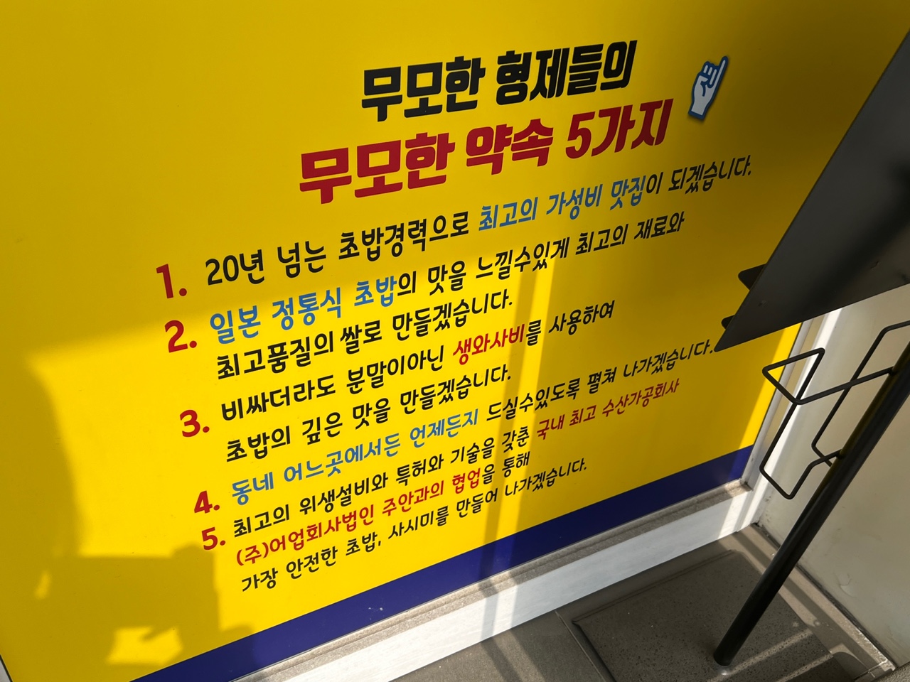 오랜만에 가족과 함께 주말에 간단점심메뉴로 색다르게 먹을거 없을까 고민하다가 초밥을 먹기로 했는데요. 가끔 초밥 먹고 싶을때 이용하는 하안동맛집 무모한초밥집을 다녀왔습니다.