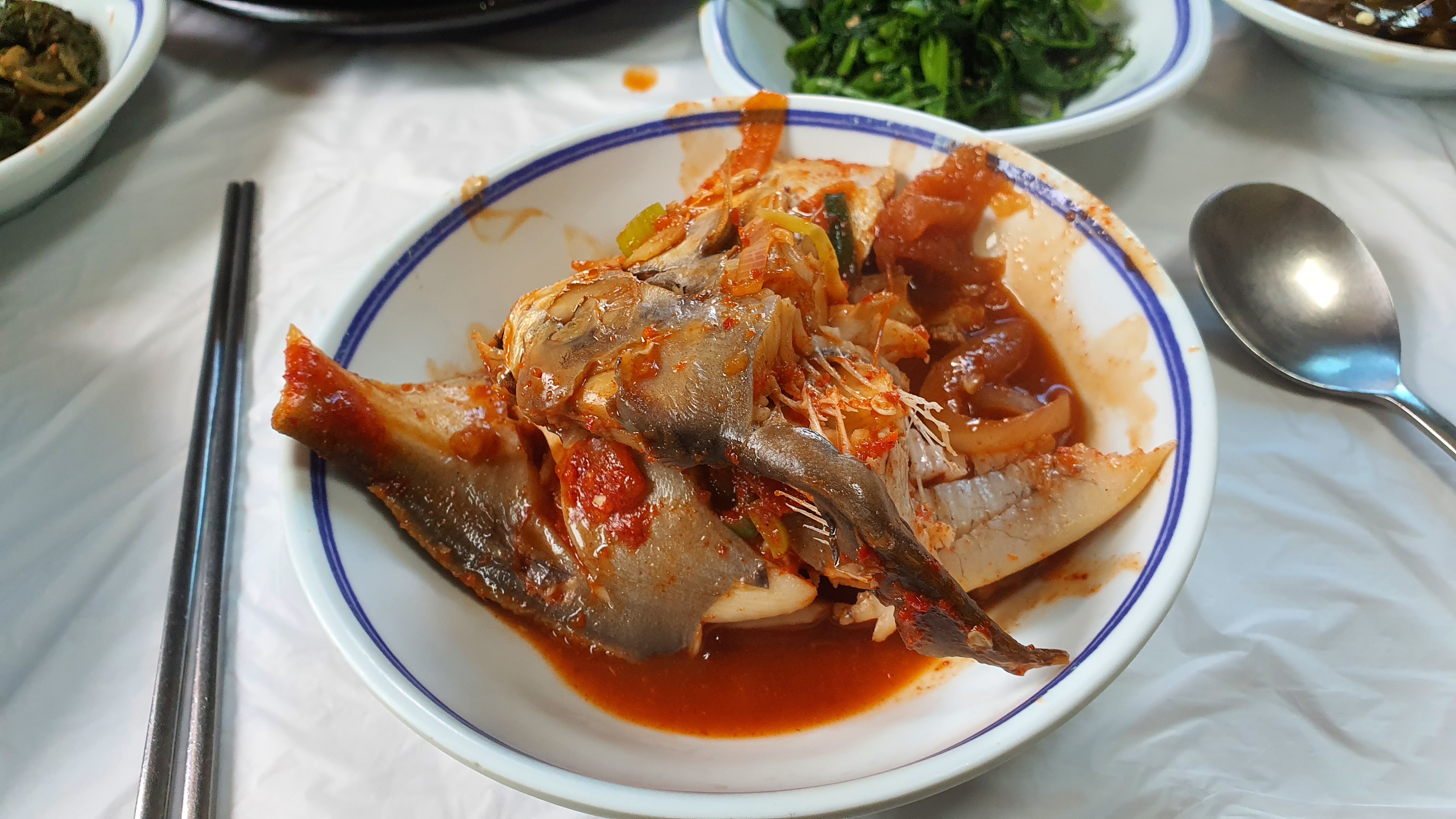 기본 반찬은 남쪽지방이라 그런지 대체로 조금 짠편이다. 나물이나 무침류가 대부분을 이루고 있으며 특히나 멸치무침은 상당히 별미였다. 일단은 집밥같은 느낌이 너무나 만족스러웠고 또한 괜찮은 맛을 보여준다.