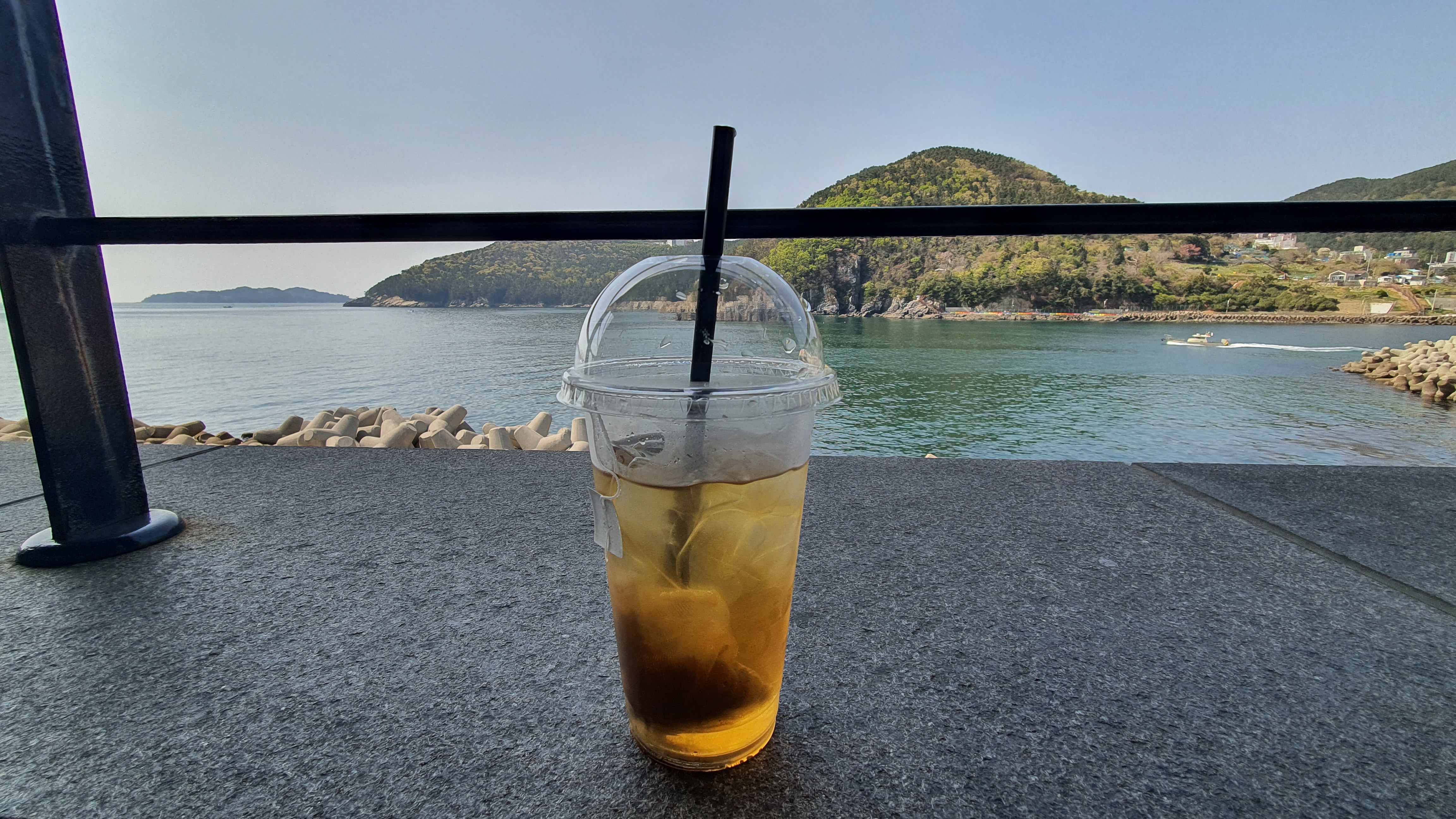 카페 포뷰에서 보이는 경치는 이렇다. 멀리 산도보이고 장승포 방파제와 이 곳을 오가는 유람선과 낚시배들을 바라볼 수가 있으며 바닷 냄새와 커피가 상당히 이국적인 느낌을 주기도 하는 곳이다.