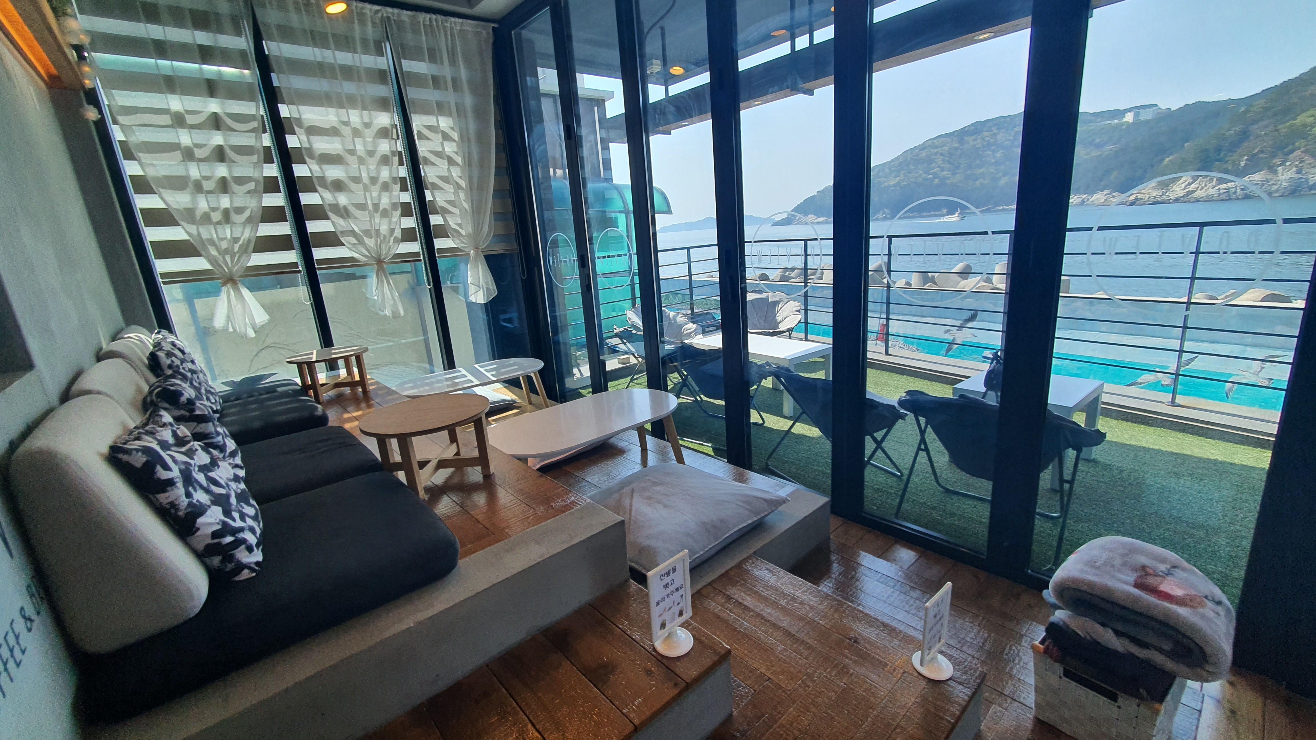 실내 인테리어도 좋은 편이고 테이크아웃을하고 장승포 방파제를 걸으면서 커피 한잔하는 것도 좋은 방법이다. 깔끔한 인테리어가 상당히 만족스럽고 국내에서 보기 힘든 이국적인 뷰 또한 상당히 만족스럽다. 참고로 이 곳에서 브런치 메뉴로 판매하는 파니니가 상당히 맛있다.