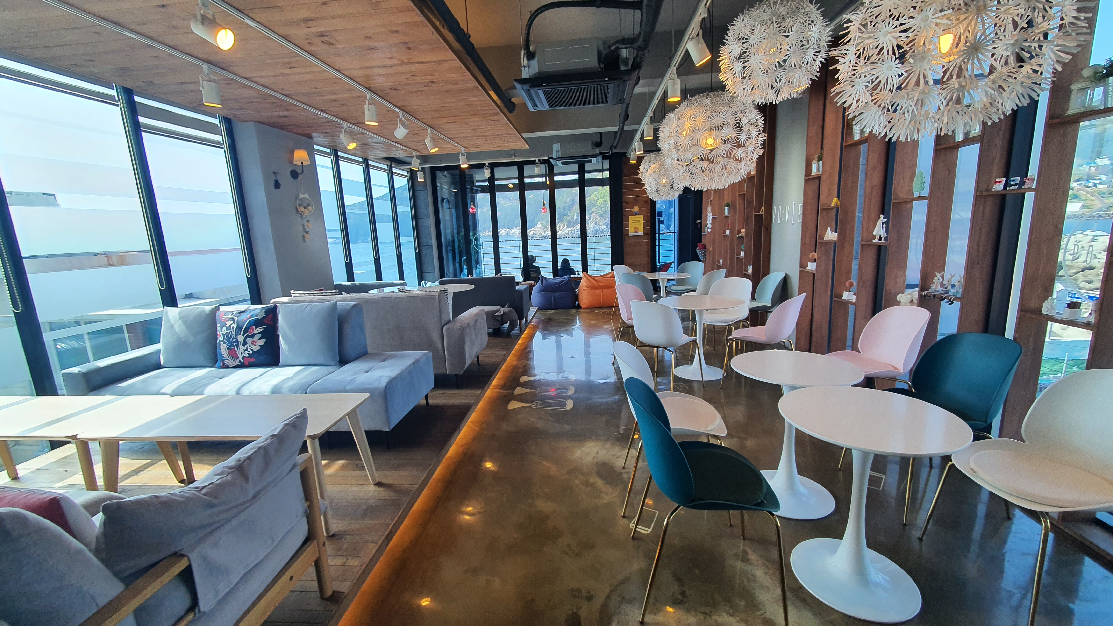 실내 인테리어도 좋은 편이고 테이크아웃을하고 장승포 방파제를 걸으면서 커피 한잔하는 것도 좋은 방법이다. 깔끔한 인테리어가 상당히 만족스럽고 국내에서 보기 힘든 이국적인 뷰 또한 상당히 만족스럽다. 참고로 이 곳에서 브런치 메뉴로 판매하는 파니니가 상당히 맛있다.