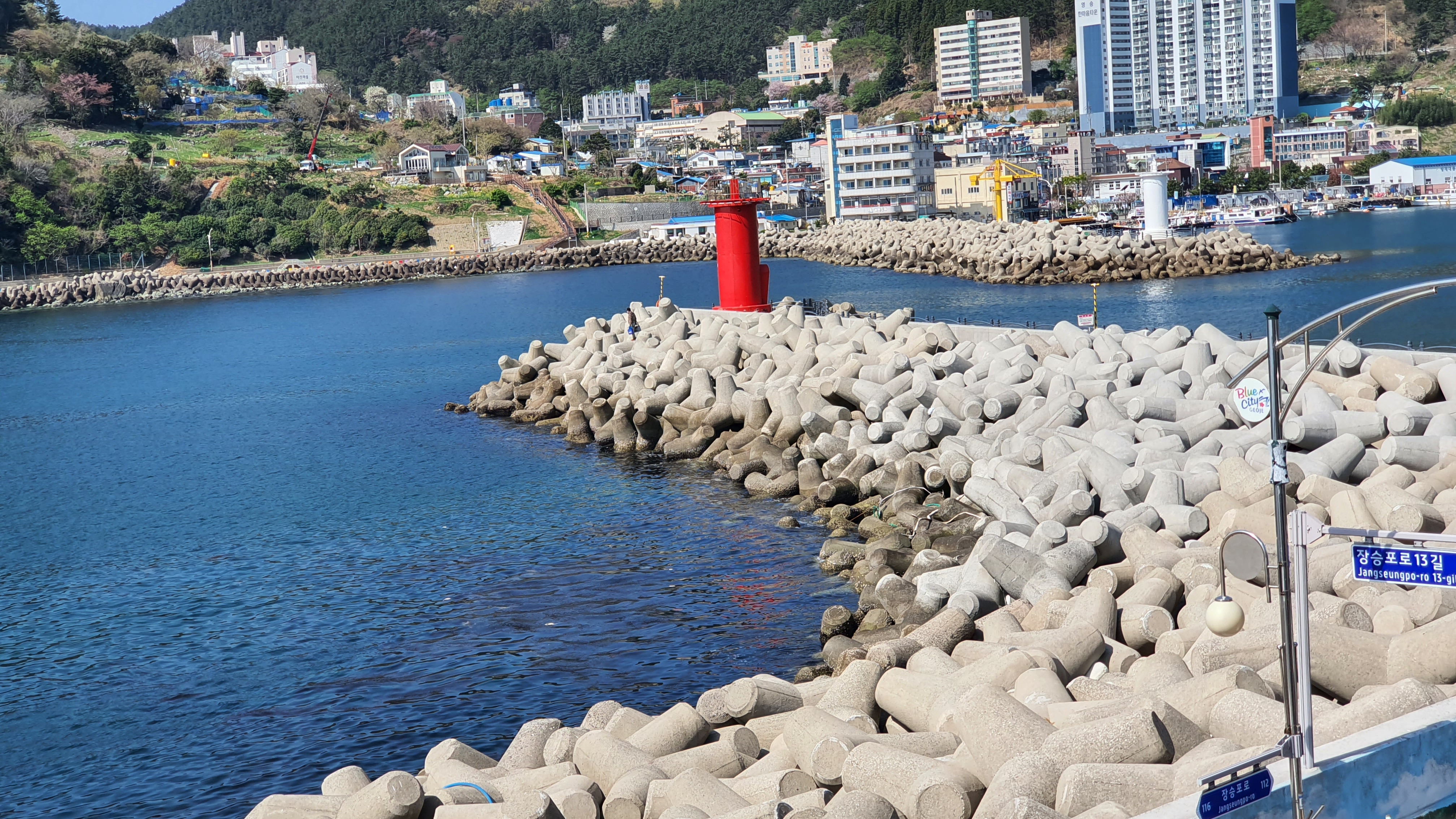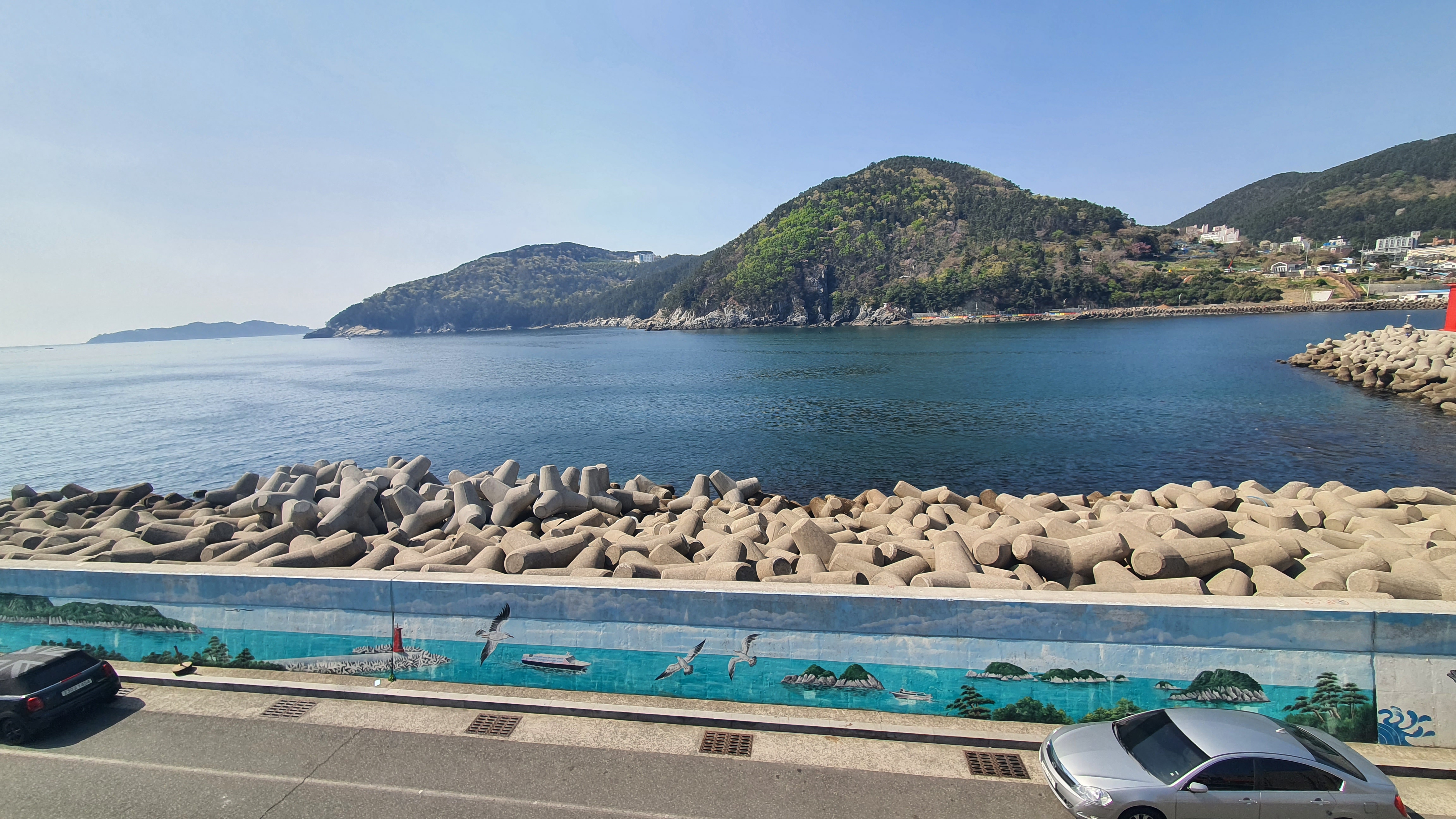 카페 포뷰에서 보이는 경치는 이렇다. 멀리 산도보이고 장승포 방파제와 이 곳을 오가는 유람선과 낚시배들을 바라볼 수가 있으며 바닷 냄새와 커피가 상당히 이국적인 느낌을 주기도 하는 곳이다.