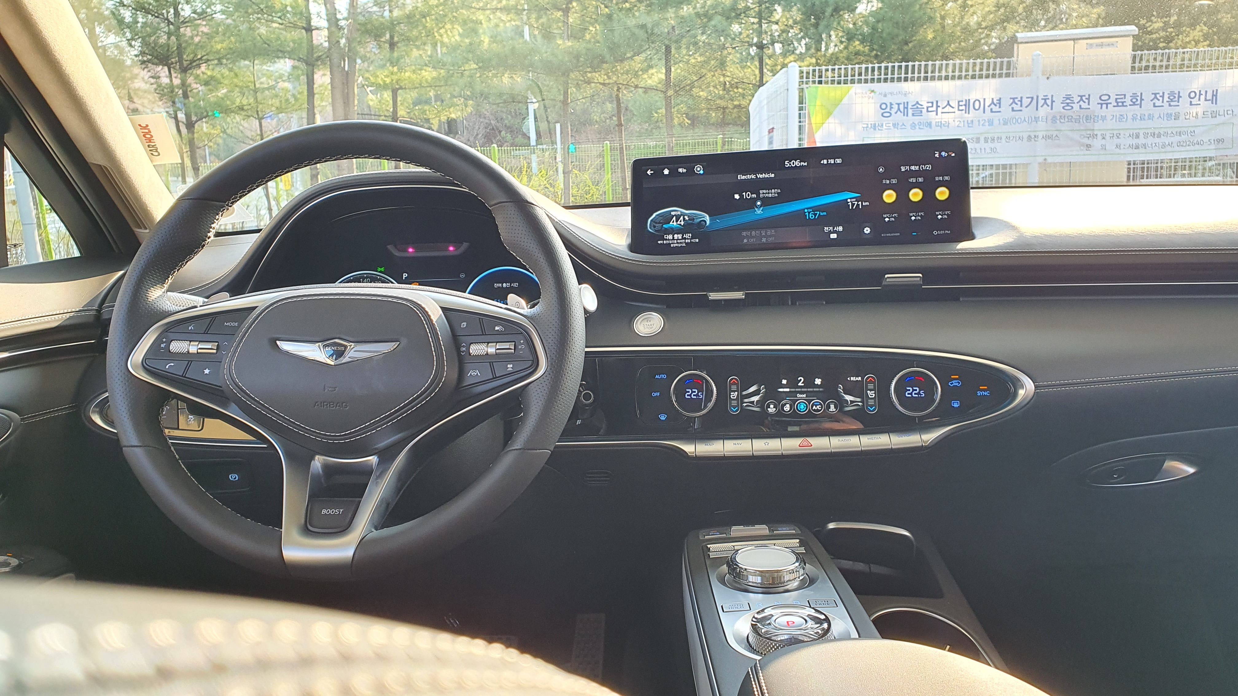 차량 실내 디자인을 살펴보더라도 기존 제네시스 GV70 내연기관 모델과 크게 다름이 없으며 다른 점이 있다면 Boost 모드가 있다는 점 그리고 전기 충전과 관련된 인포테인먼트 시스템 메뉴가 추가되었다는 점을 제외하고 본다면 전기차 티가 나지 않는다. 솔직히 내가 이 차량에 오너라면 좀 더 비싼 돈을 주고 비싼 티를 내지 않는 것에 대한 아쉬움이 분명이 있을거라 생각된다.