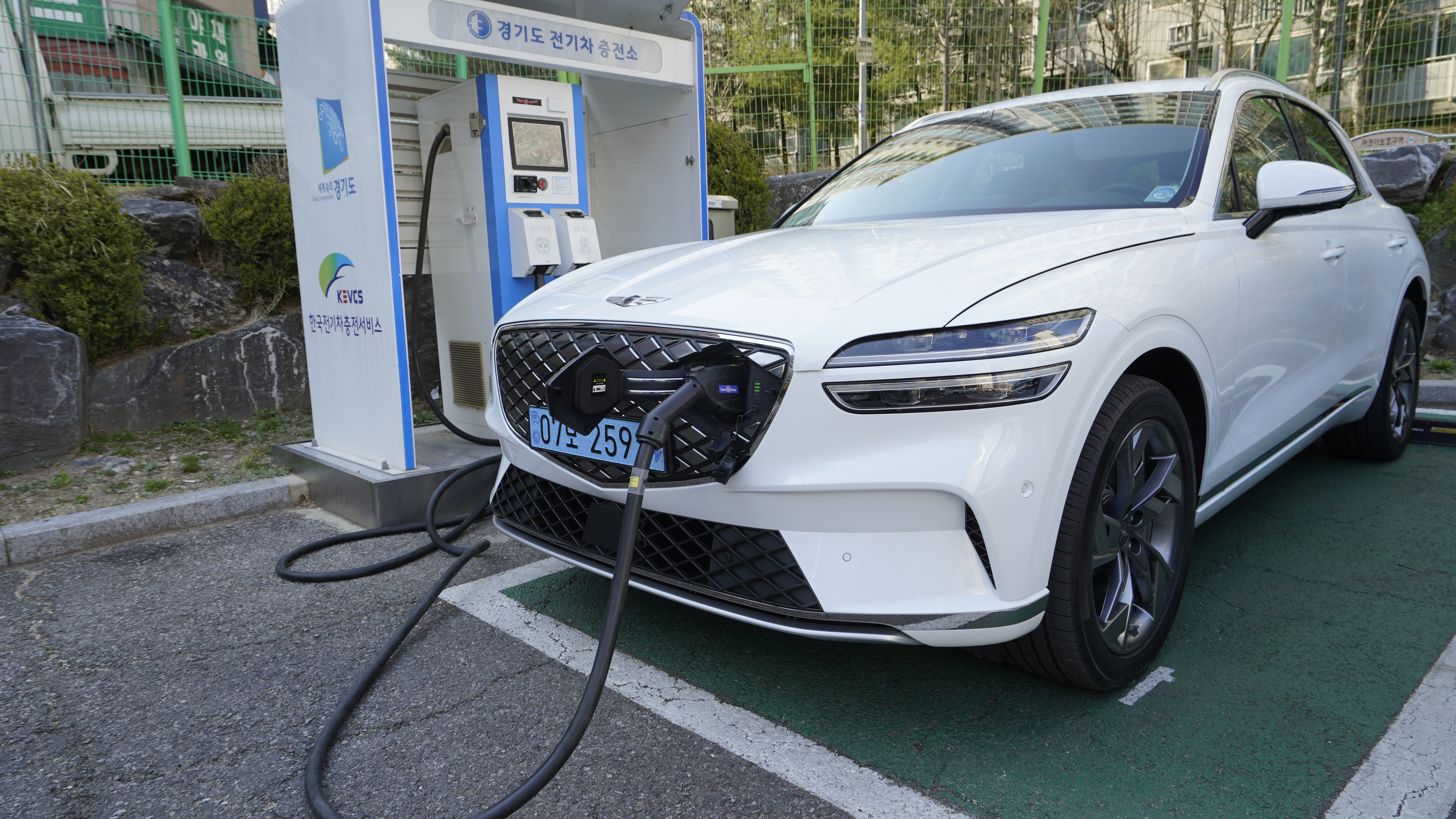 GV70은 럭셔리 브랜드 이미지로 각인되고 싶은 제네시스 브랜드에서 SUV 중에서 나름 스포츠 포지션을 가지고 있는 모델이다. 이런 포지션 떄문인지 몰라도 차량의 출력은 약 435마력으로 내연기관과 비교한다면 얼마 전 출시된 포르쉐 마칸 GTS의 최고출력 443마력과 비슷한 수준이다. 물론 포르쉐라는 브랜드와 내연기관과 전기차를 단순 수치상으로 비교하는 것은 무리가 있겠지만 그만큼 빠른 출력을 가지고 있는 차량이다.