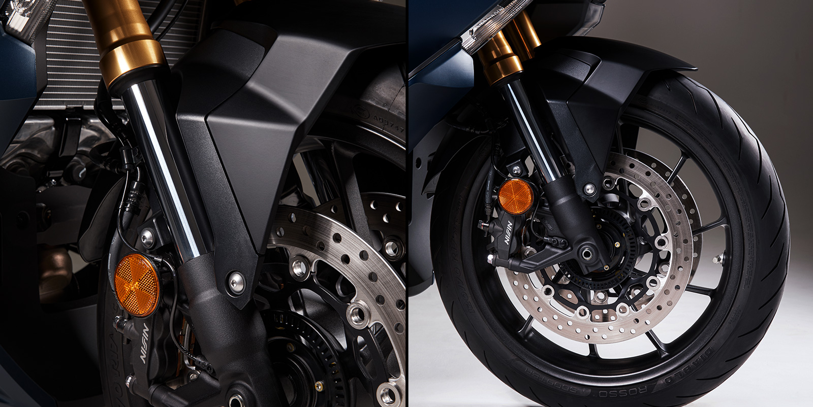 직격 41mm 도립식 포크를 탑재해 승차감을 향상시켰으며, 강성을 최적화한 휠 스포크 설계로 노면 충격을 효과적으로 분산하도록 했다. 또 프런트에 더블 디스크 브레이크를 채용해 안심할 수 있는 제동력을 제공한다.