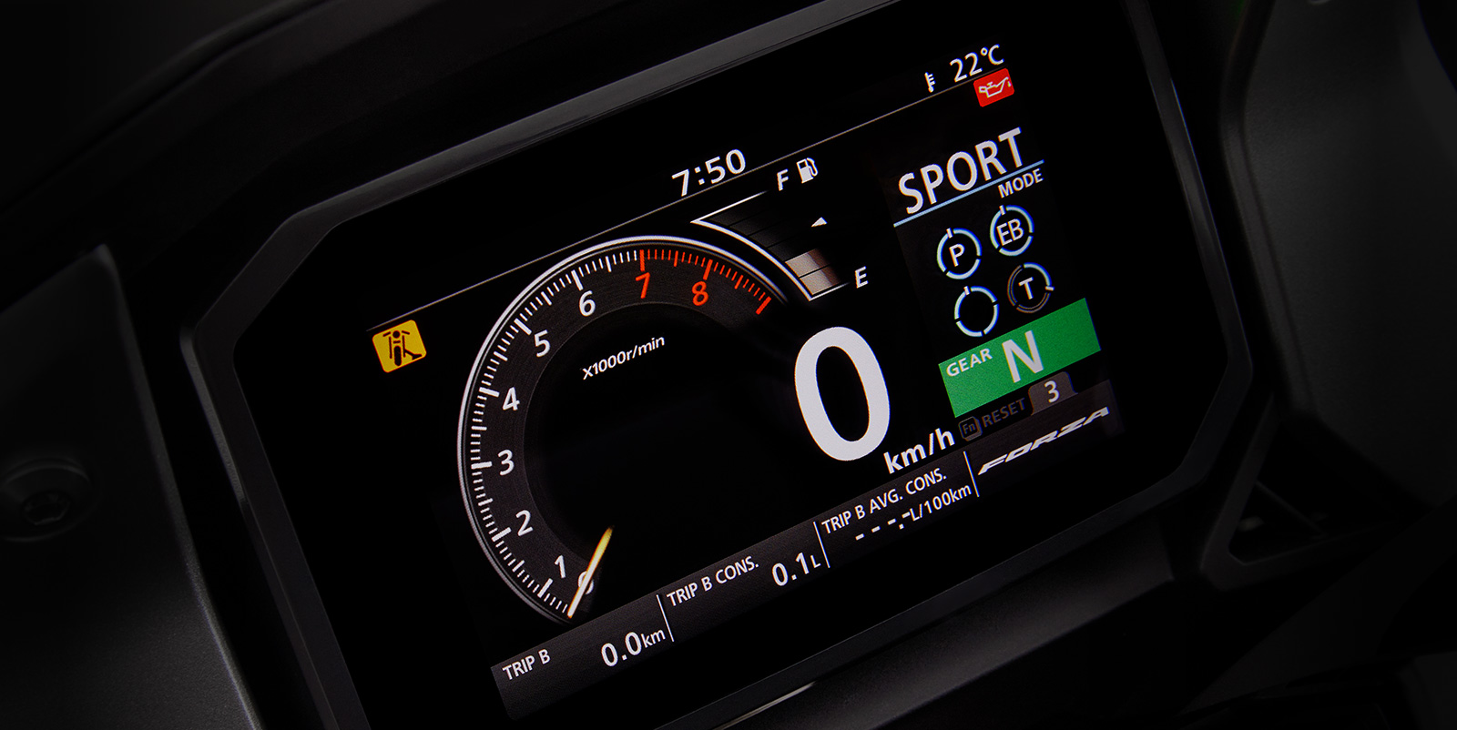 혼다포르자750라이더 인터페이스에 통합되어 5인치 TFT 디스플레이를 통해 볼 수 있는 새로운 혼다 스마트폰 음성 제어 시스템은 이동 중 라이더가 스마트폰을 연결해 전화, 이메일, 음악 및 내비게이션등을 음성으로 사용할 수 있도록 한다. 또 왼쪽 스위치 기어의 버튼에서도 사용 가능하다.