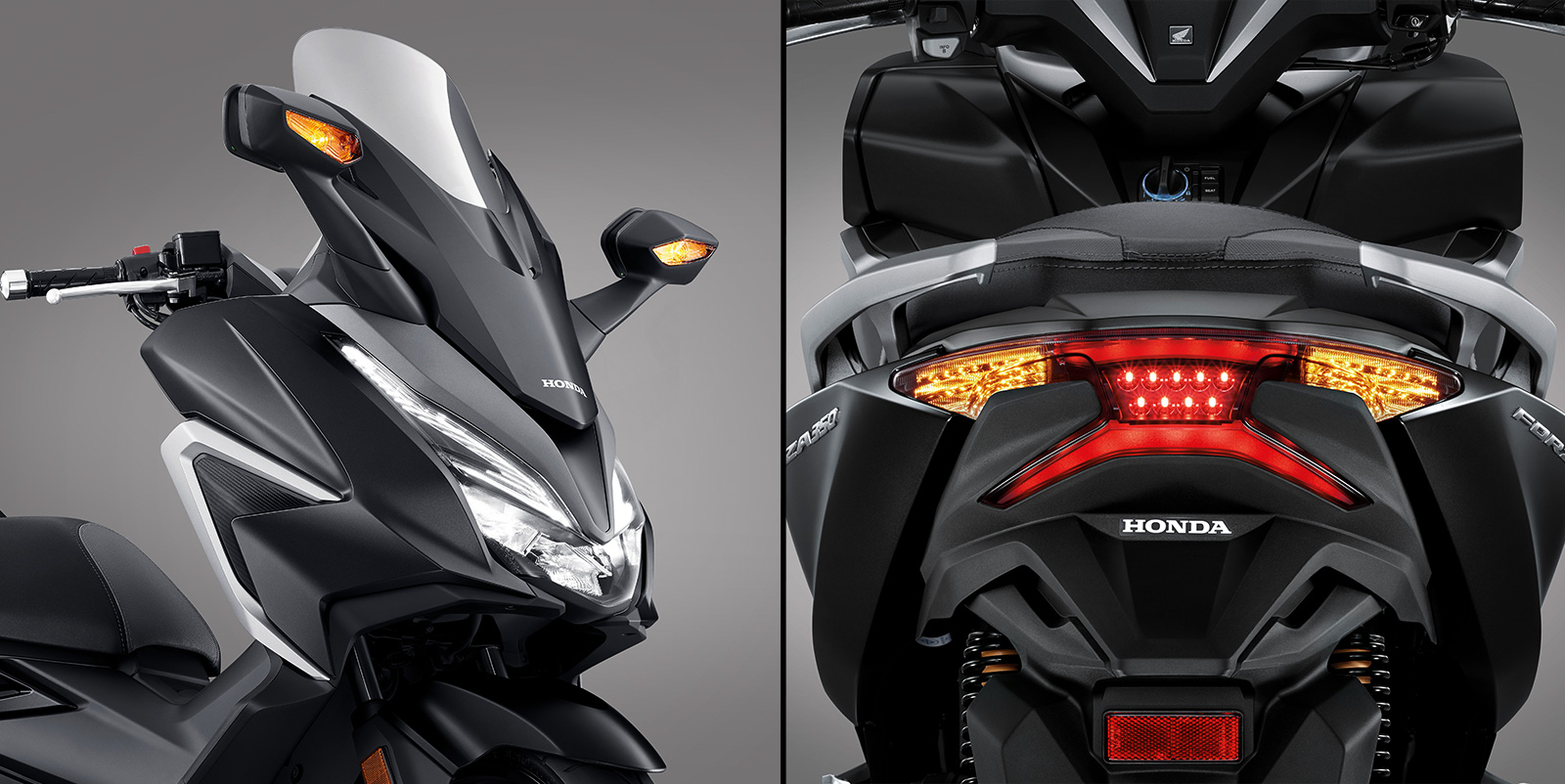 헤드라이트, 테일라이트 등 모든 등화기를 LED를 사용해 디자인면에서 포르자350의 정체성을 강조할 뿐만 아니라 경량화, 소형화, 저전력화등과 같은 성능 향상에도 효과가 있다.