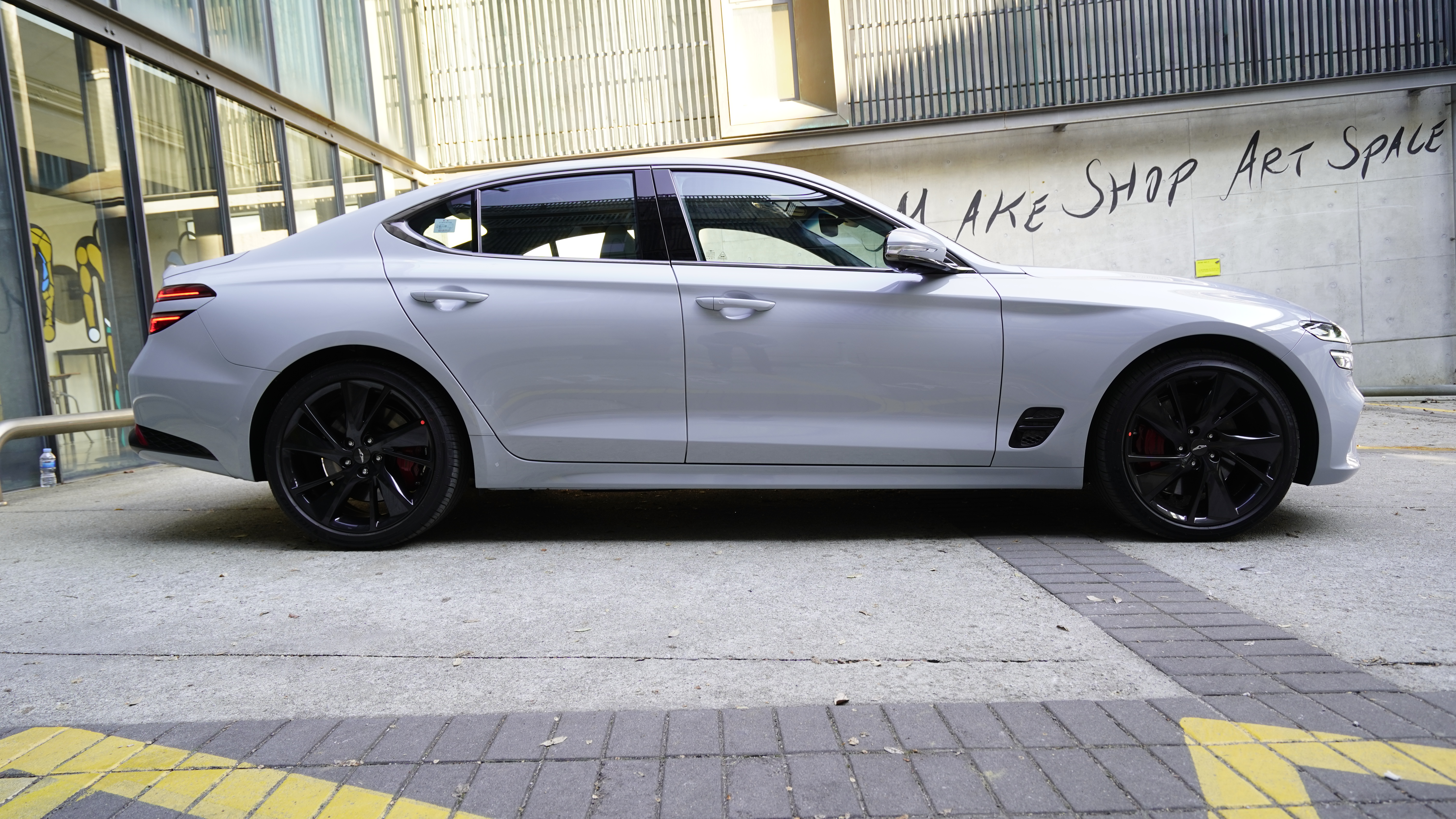 차량 측면은 페이스리프트 모델이기에 큰 변화가 없다. 다만 프론트 휀다에 화살표 모양의 에어덕트 디자인이 하단으로 작게 들어갔다는 점과 테일램프 디자인 변화가 차량 측면 디자인에 영향을 줬다. 이번 디자인에 테일램프는 상당히 만족스러운 부분이다. 다만 트렁크에서 딱 잘라버린 디자인은 캐딜락 C세그먼트인 CT4 디자인이 생각나는 디자인이며 기존 트렁크에 있던 번호판 자리는 범퍼 하단으로 이동했다. 풀체인지 디자인에서는 두 개의 테일램프를 G90 모델처럼 하나로 이어갈지가 키 포인트다.