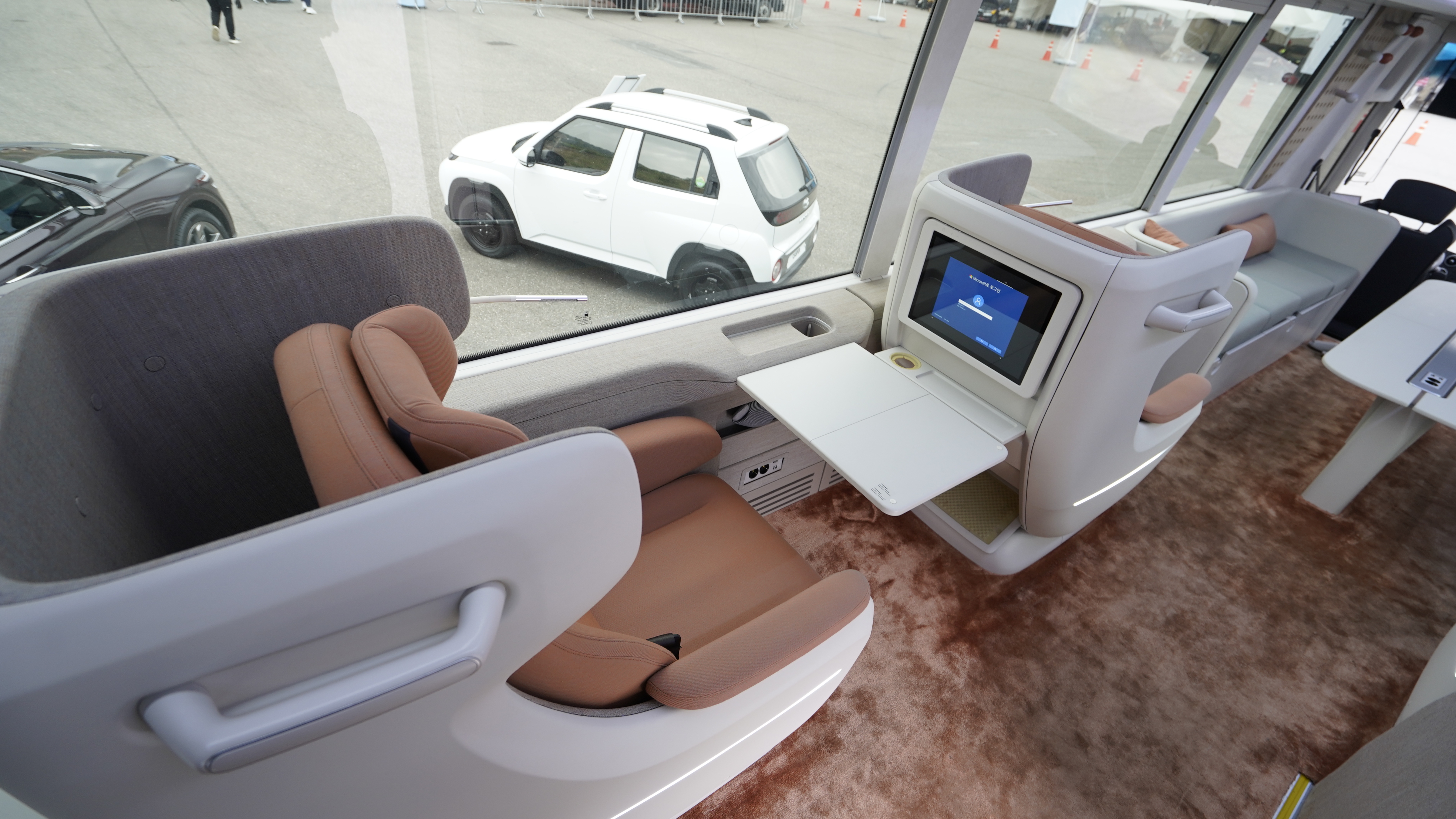 2021년 서울 모빌리티쇼에서 보여줬던 모바일 버스는 현대자동차 프리미엄 고속버스인 유니버스를 사무 공간으로 커스터마이징 한 "유니버스 모바일 오피스" 모델입니다. 현재 2021년 K리그 우승 팀인 전북 현대 모터스 축구팀에서 작전 지휘차로 사용되고 있으며 전주 국제영화제에 모바일 오피스로도 지원되고 있습니다. 미래의 이동식 오피스 공간을 보여주고 있었습니다.