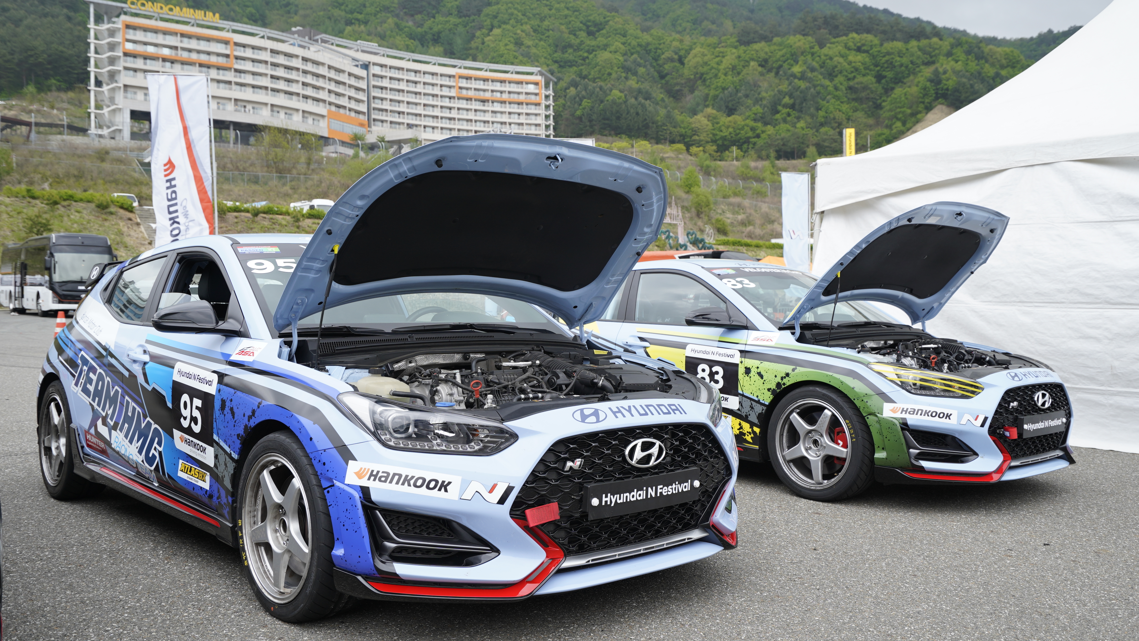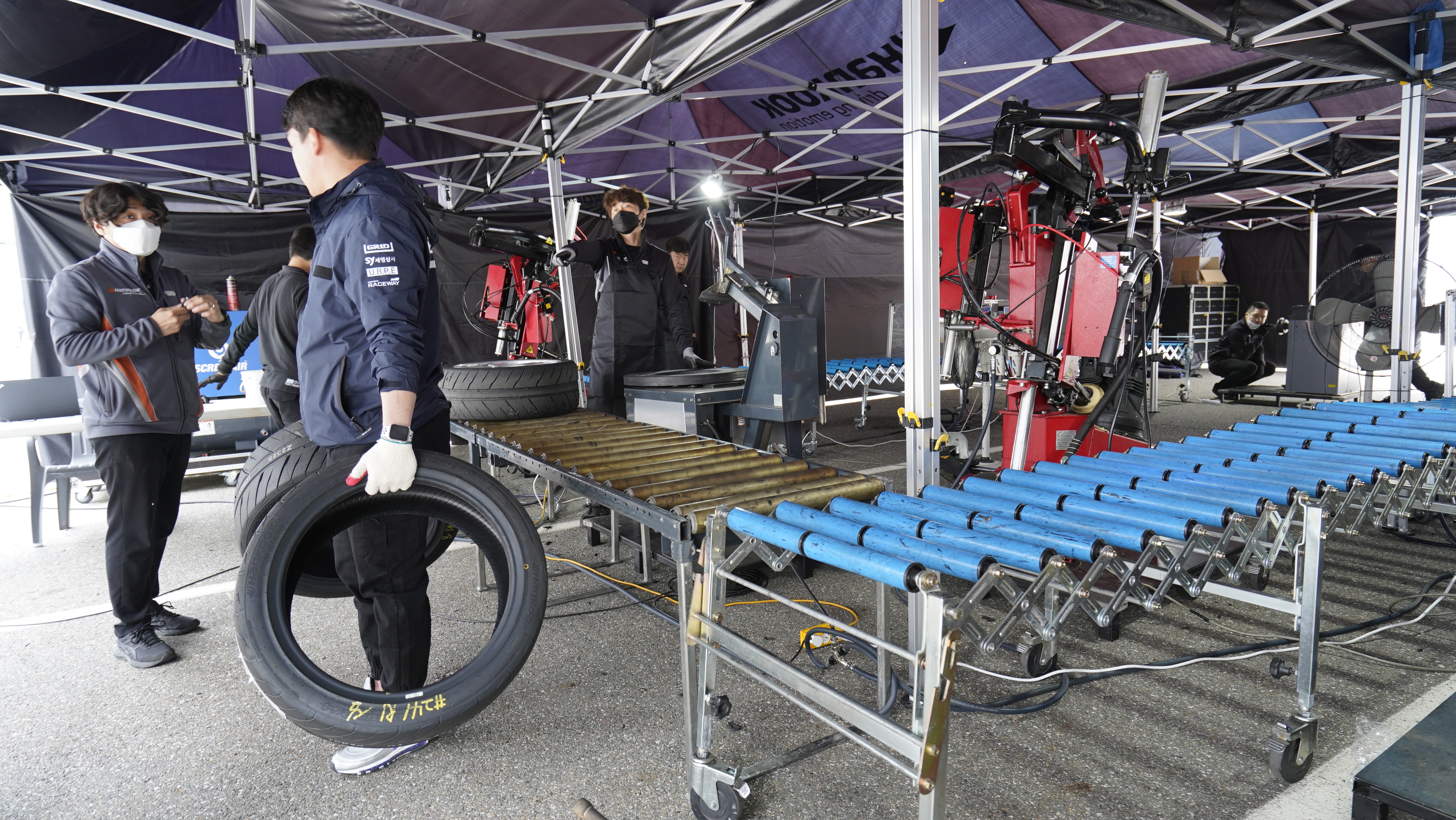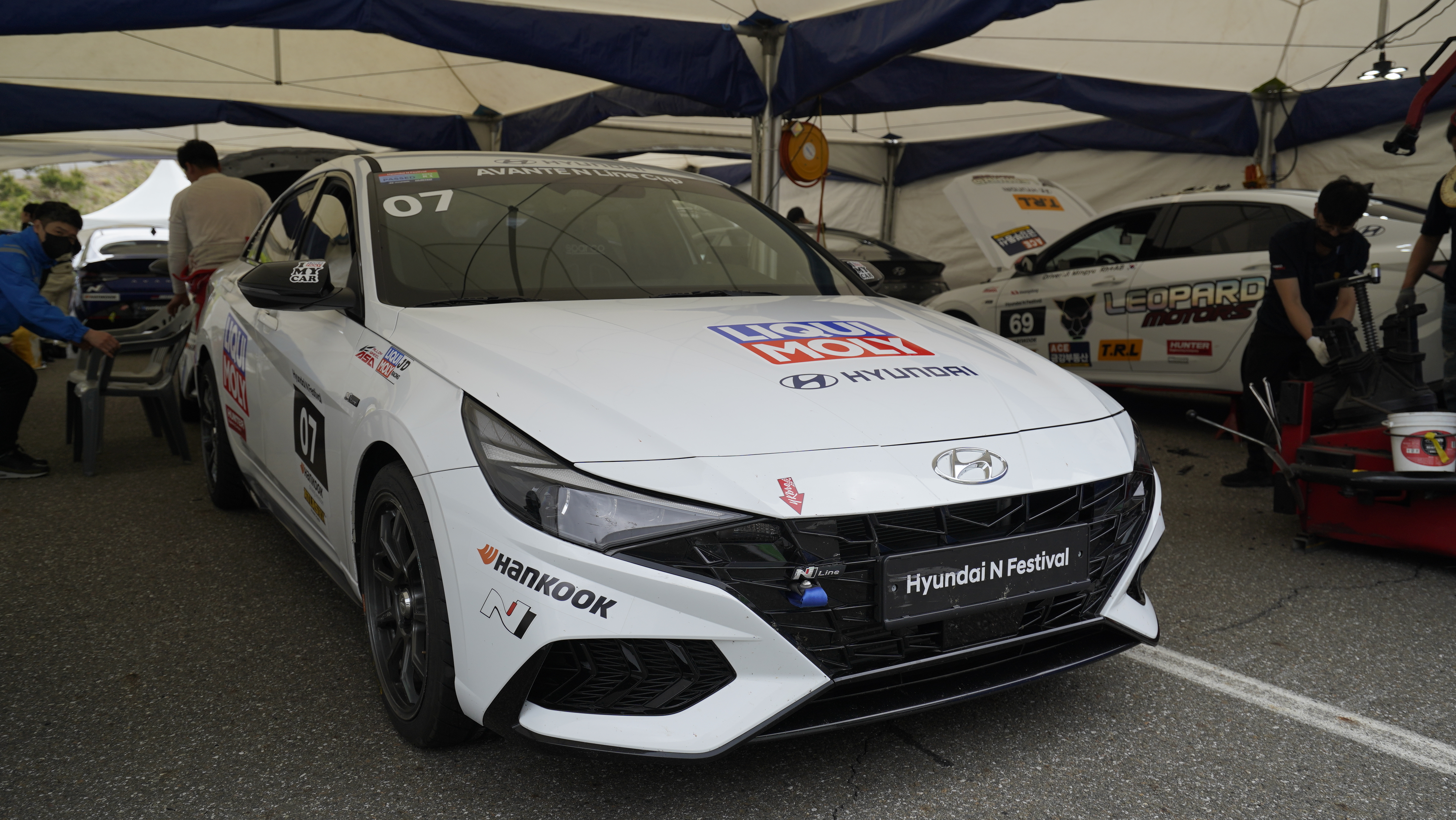 레이스를 준비하면서 차량에 문제가 없는지 혹은 규정에 맞는 튜닝을 했는지를 검사하는 검차 과정을 꼭 거쳐야 대회에 참가할 수가 있으며 현대 N 페스티벌의 원메이크 타이어인 한국타이어는 현장에서 레이스 타이어를 장착하는 모습도 볼 수가 있습니다.