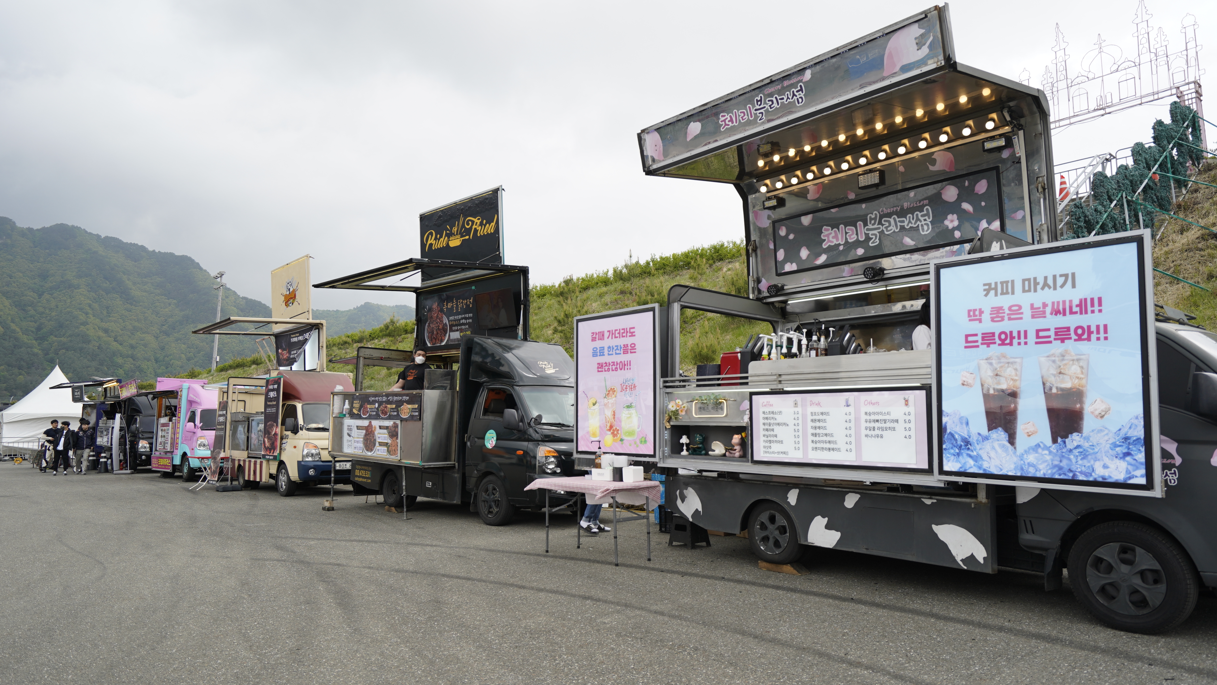 현대 N페스티벌은 단순히 자동차 레이스만 즐기는 서킷이 아닙니다. 한 편으로는 이렇게 바이크 전시, 세차 케미컬 할인 판매와 다양한 이벤트를 진행하고 있으며 맛있는 푸드트럭과 쉬면서 레이스를 관람할 수 있는 공간까지 가족 단위로 현대 N페스티벌을 즐기는 사람들이 굉장히 많았습니다.