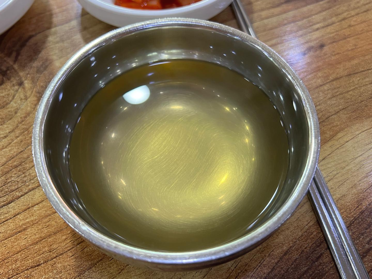 육수와 물은 입구쪽에 있는 셀프바를 이용해서 원하는 만큼 이용할 수 있습니다. 잔치국수 외의 메뉴를 드시는 경우 같이 드시면 좋습니다. 고명이나 뭐 없이 너무 맑아서 옥수수차 같이 보일 수 있지만 육수의 맛이 잘 우러나와서 음식이 나오기전에 입맛 돋우는데 좋더라고요.