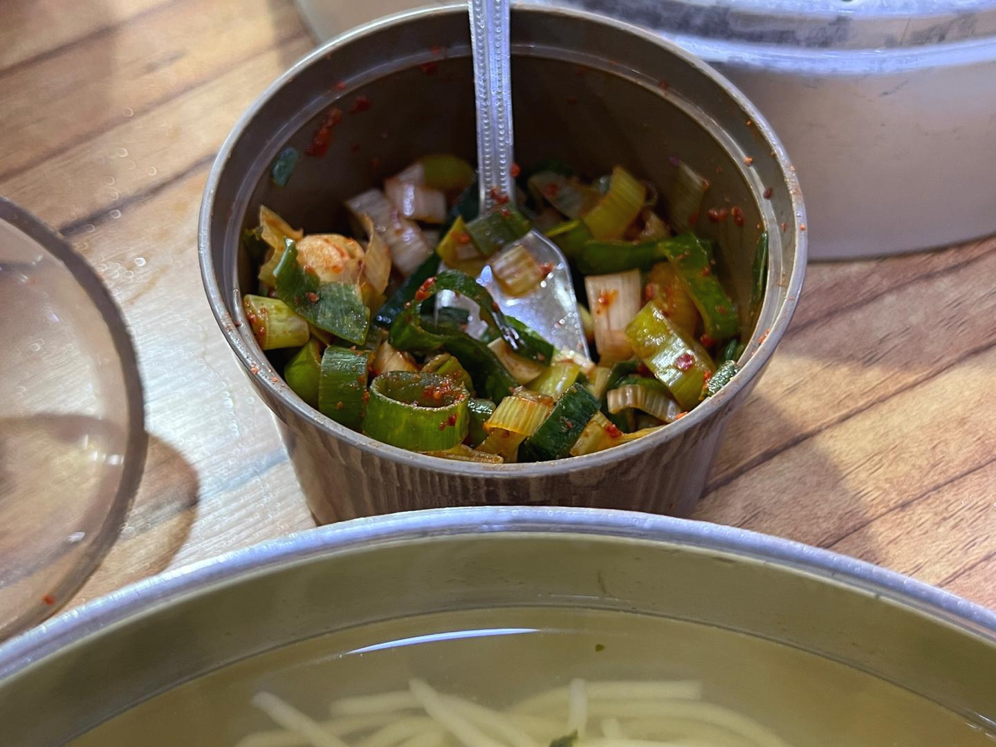 잔치국수는 이런 파 양념장을 같이 주십니다. 기호에 맞게 적당량을 넣어주고 같이 드시면 됩니다. 가끔 잔치국수하면 너무 밍숭한 느낌의 아쉬운 집들도 있는데, 국물도 감칠맛나고, 적당한 중면으로 씹는 맛도 있어서 유부 고명과 함께 맛있게 먹을 수 있었습니다.