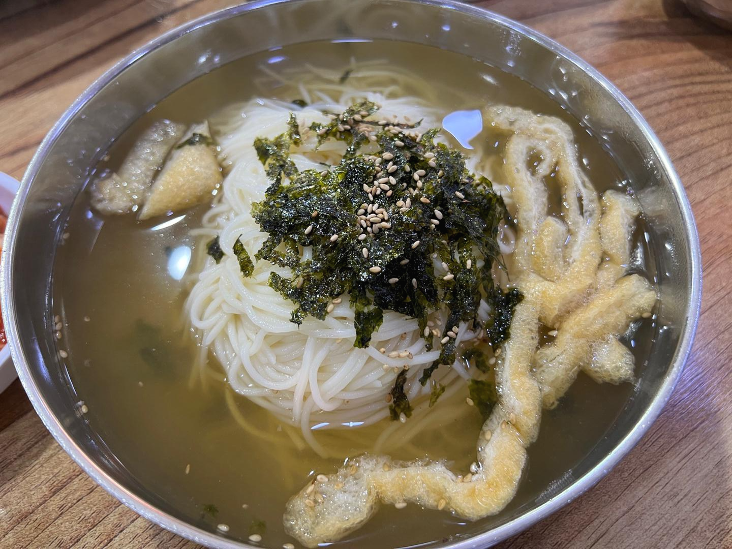육수와 물은 입구쪽에 있는 셀프바를 이용해서 원하는 만큼 이용할 수 있습니다. 잔치국수 외의 메뉴를 드시는 경우 같이 드시면 좋습니다. 고명이나 뭐 없이 너무 맑아서 옥수수차 같이 보일 수 있지만 육수의 맛이 잘 우러나와서 음식이 나오기전에 입맛 돋우는데 좋더라고요.