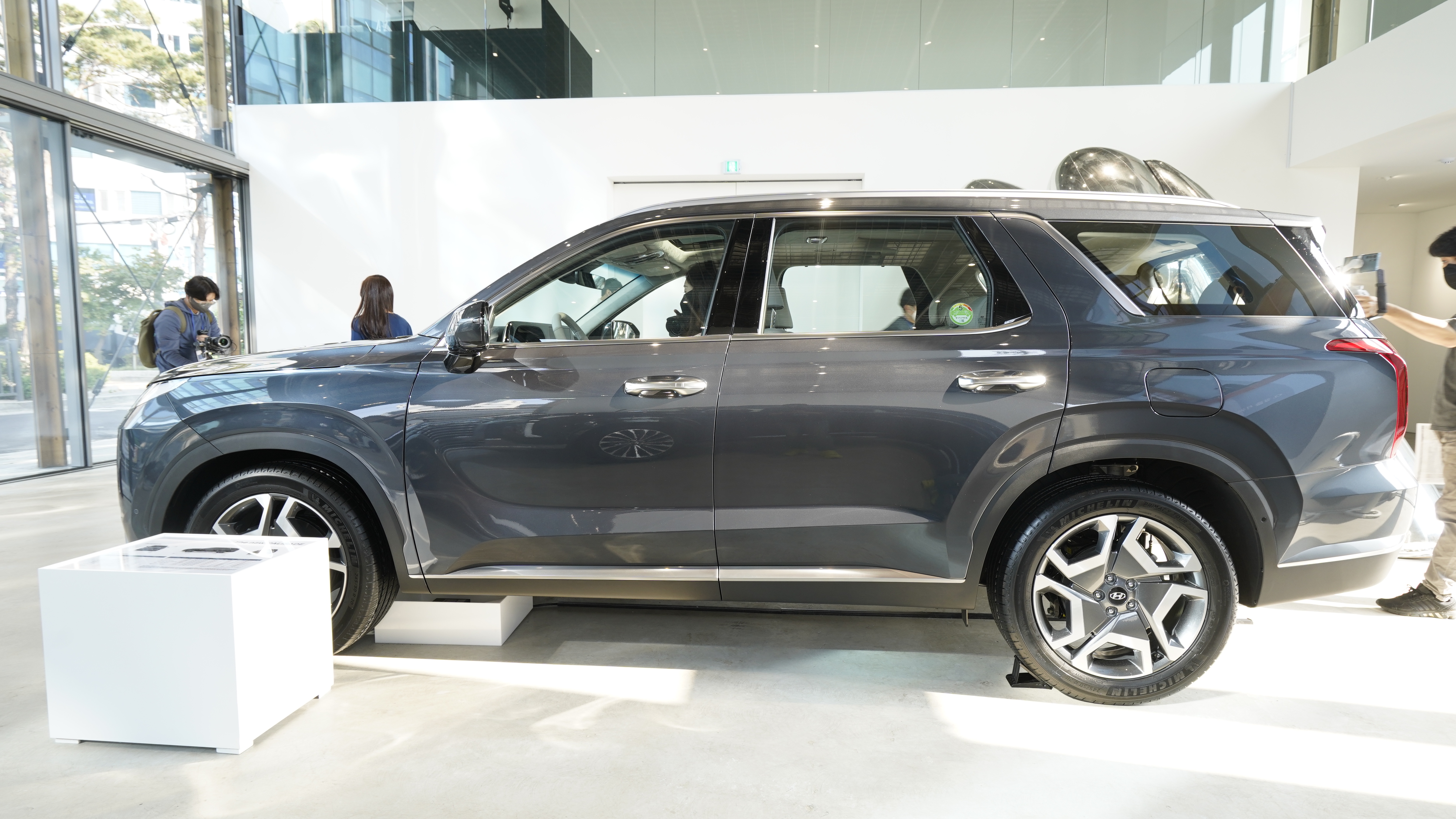 이번 팰리세이드 페이스리프트 모델에서 추가적인 특징은 전장 길이가 15mm가 늘어났다는 점이다. 하지만 실제 차량에 구조적인 부분이나 휠 베이스는 그대로이며 디자인적 요소로 인한 차이로 측면에서 바라봤을 때 기존 모델과 크게 다름이 없다. 다만 최상위 등급의 캘리그래피에서 만나볼 수 있는 새로운 휠은 많은 고객들에게 캘리그래피를 선택해야 할 이유를 만들어주는 것 같다. 또한 2열 도어 글라스 이중접합 차음 유리를 전 트림에 적용하였으며 두께 또한 3.2T에서 4.0T로 향상되었다. 여기에 흡음재 두께를 증대하여 실내 정숙성이 이전보다 좋아졌다.