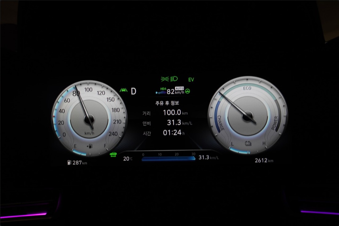 그렇다고 고속 연비가 나쁘지 않다. 정부 표준 고속도로 연비는 18.6km/L (17인치 휠타이어 적용)으로 시내 주행 연비 보다 낮게 표기가 되어있지만 제한속도 80km/L 도로에서 시속 80km/h 주행으로 정확히 100km를 주행했을 때 연비가 31.3km/L로 엄청난 연비를 보여주기도 했다. 만약에 가능하다면 서울에서 부산까지 400km라고 가정했을 때 연료 비용은 계산적으로 만 본다면 2만 5천원이면 도달할 수 있는 상당히 높은 연비를 보여주기 때문에 오래탄다고 가정한다면 이보다 좋은 연비 좋은 내연기관 차량이 있을까? 라는 생각이 들기도 한다. (물론 플러그인 하이브리드 제외)