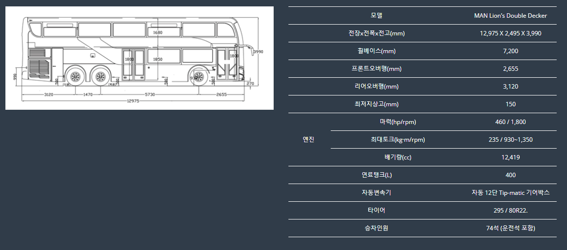세련된 유럽형 코치 스타일이며 1, 2층 전면 통유리를 통해 선명한 시야를 제공한다.