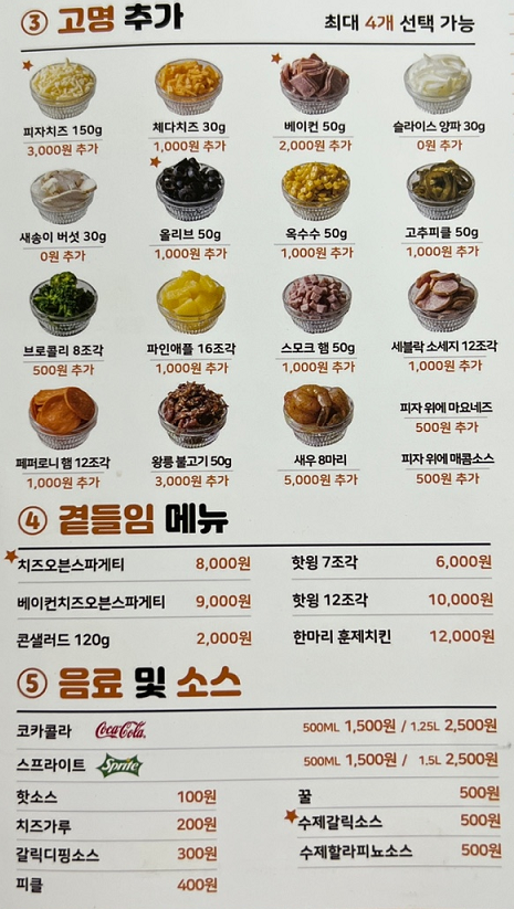 그외에도 사이드 메뉴추가는 물론이고 토핑들도 다양하게 추가 할 수 있습니다.