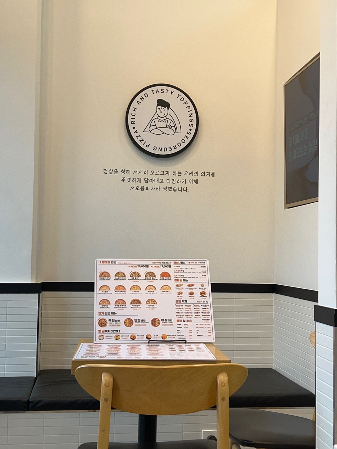 매장 자체는 테이블이 두개정도? 있긴 있었는데요. 테이크아웃 브랜드라서 웨이팅하면서 기다릴 수 있는 세팅인것 같았습니다. 한 테이블은 메뉴판이 이렇게 비치 되어 있고, 포장음식 픽업 대기 하는 분들이 계속해서 두세분정도 계셨는데 성인 세네명 들어오니 매장이 꽉차는 정도 규모였습니다.