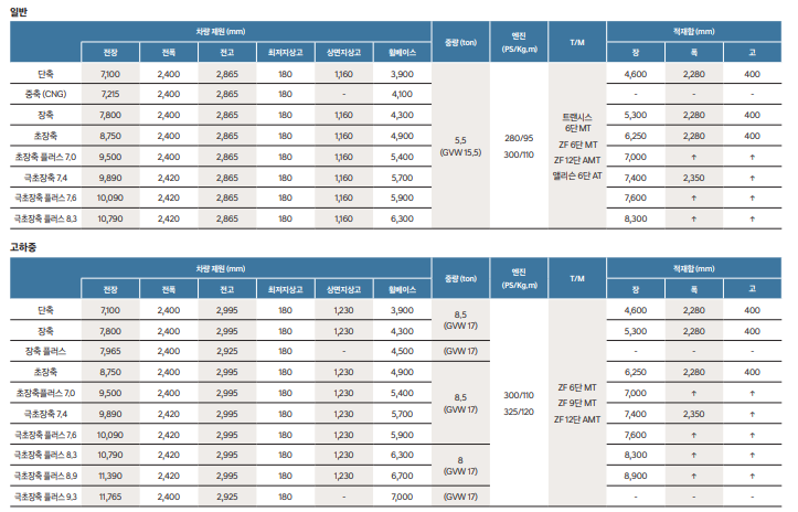 현대자동차가 스웨덴의 상용차 제조사인 스카니아와 협력하여 개발한 국내 최대 체급의 대형트럭/트랙터이다. 적재중량은 8.5톤부터 시작이며 대우상용차의 프리마와 달리 중형 및 준대형 버전은 없다.
