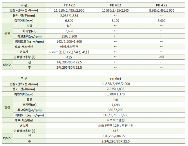 2010년부터 상용차 시장에서 선보였으며, FM시리즈 비해 지상고를 높이고 차대를 강화하는 등 험로 주파에 특화된 모델이다. 특성상 주로 건설장비인 덤프, 믹서트럭에 사용되어진다.