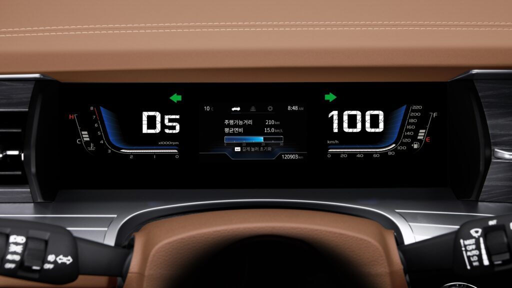 슬림&와이드 컨셉의 버튼리스 디지털 인터페이스를 적용해 미래지향적이면서 세련된 감성을 느낄 수 있게 했으며 3분할 와이드 디지털 클러스터, 12.3인치 다기능 인포콘 AVN, 8인치 버튼리스 디지털 통합 컨트롤 패널 등을 엔트리 모델부터 기본으로 적용해 주행이 필요한 모든 정보를 제공하고 주요 기능을 컨트롤 할 수 있습니다.