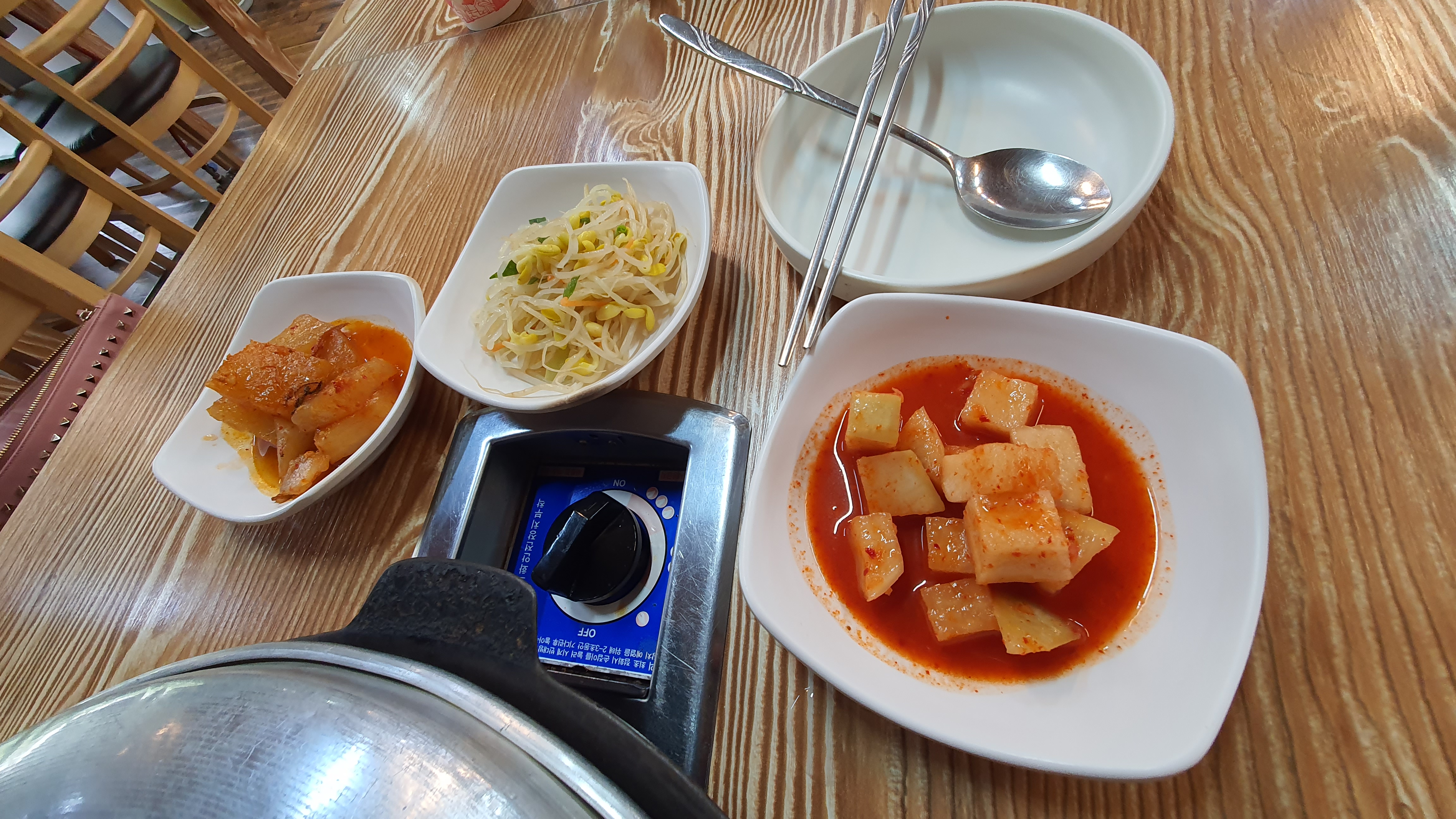 기본 반찬은 생각보다 단순한다. 김치와 콩나물이 전부인데 이건 다른 의정부 부대찌개 맛집이나 부대찌개로 유명한 송탄 지역을 가도 비슷하다. 사실 모든 식재료를 모두 찌개에 넣기 때문에 특별히 반찬이 없어도 되는 음식이긴하다. 하지만 아이들과 함께 간다면 아이들이 먹을 만한 반찬이 조금 더 있었으면 하는 아쉬움도 살짝 남는다.